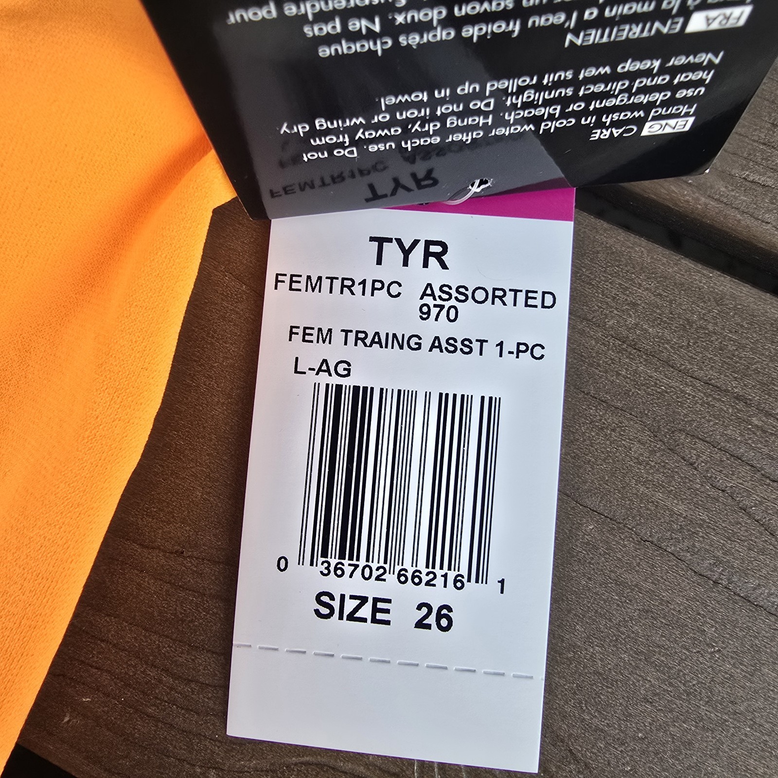 TYR Duralast Youth Girl's Neon Orange DiamondFit 1 Pc Swimsuit Sz 26 NEW
