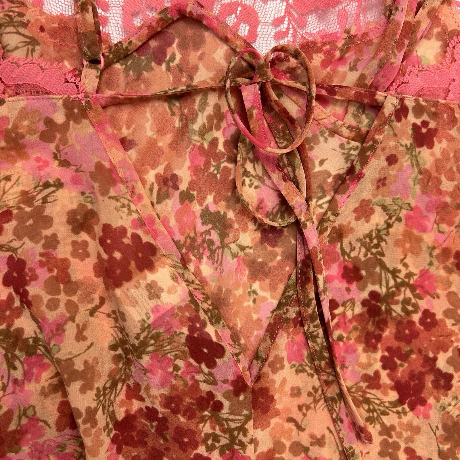 Victorias Secret Lingerie Chemise Slip Floral Nightie Sheer Lace Medium Pink