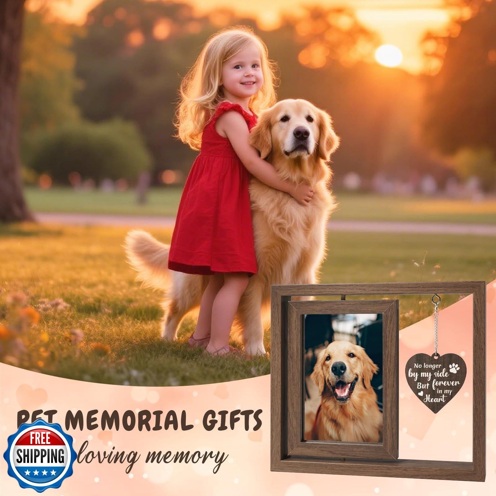 Aurlova Pet Memorial Gifts for Loss of Dog, 4x6 Rotating Wooden P