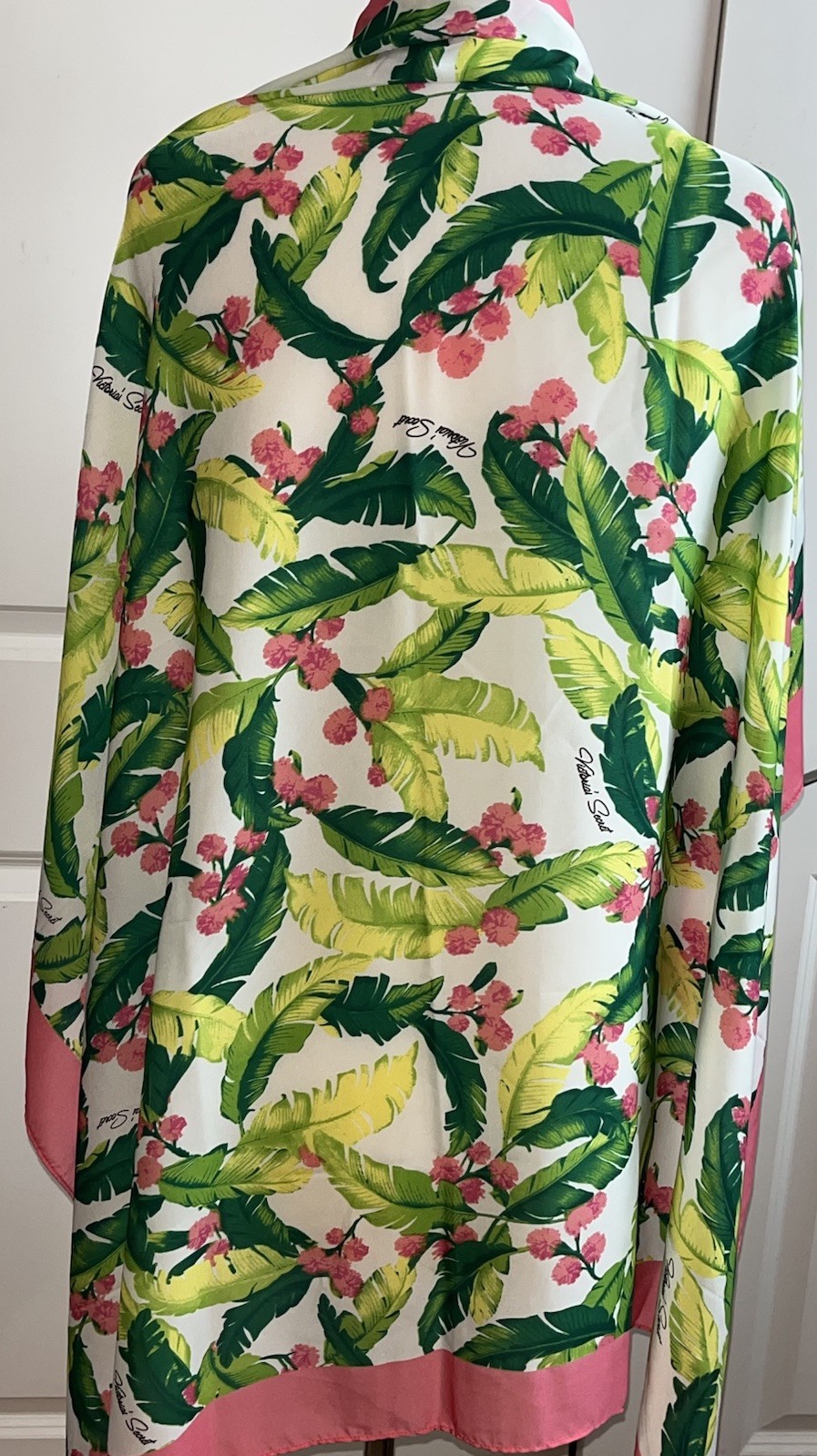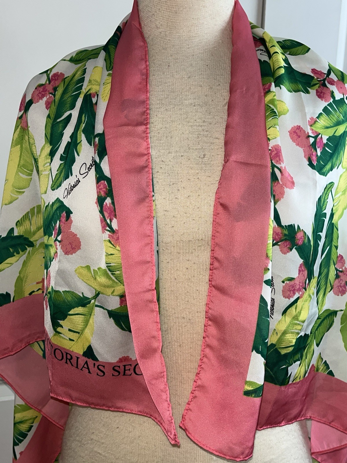 как выглядит VTG Lg Victorias Secret Scarf 43" Pink Green Silky Tropical Floral Logo Fashion фото