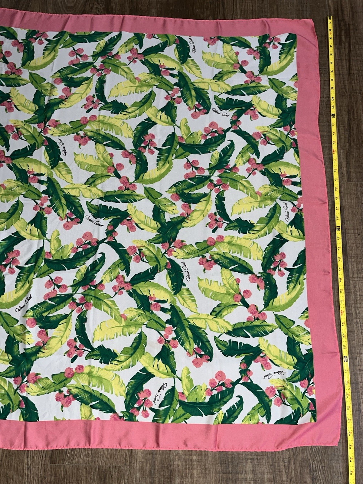 VTG Lg Victorias Secret Scarf 43 Pink Green Silky Tropical Floral Logo Fashion