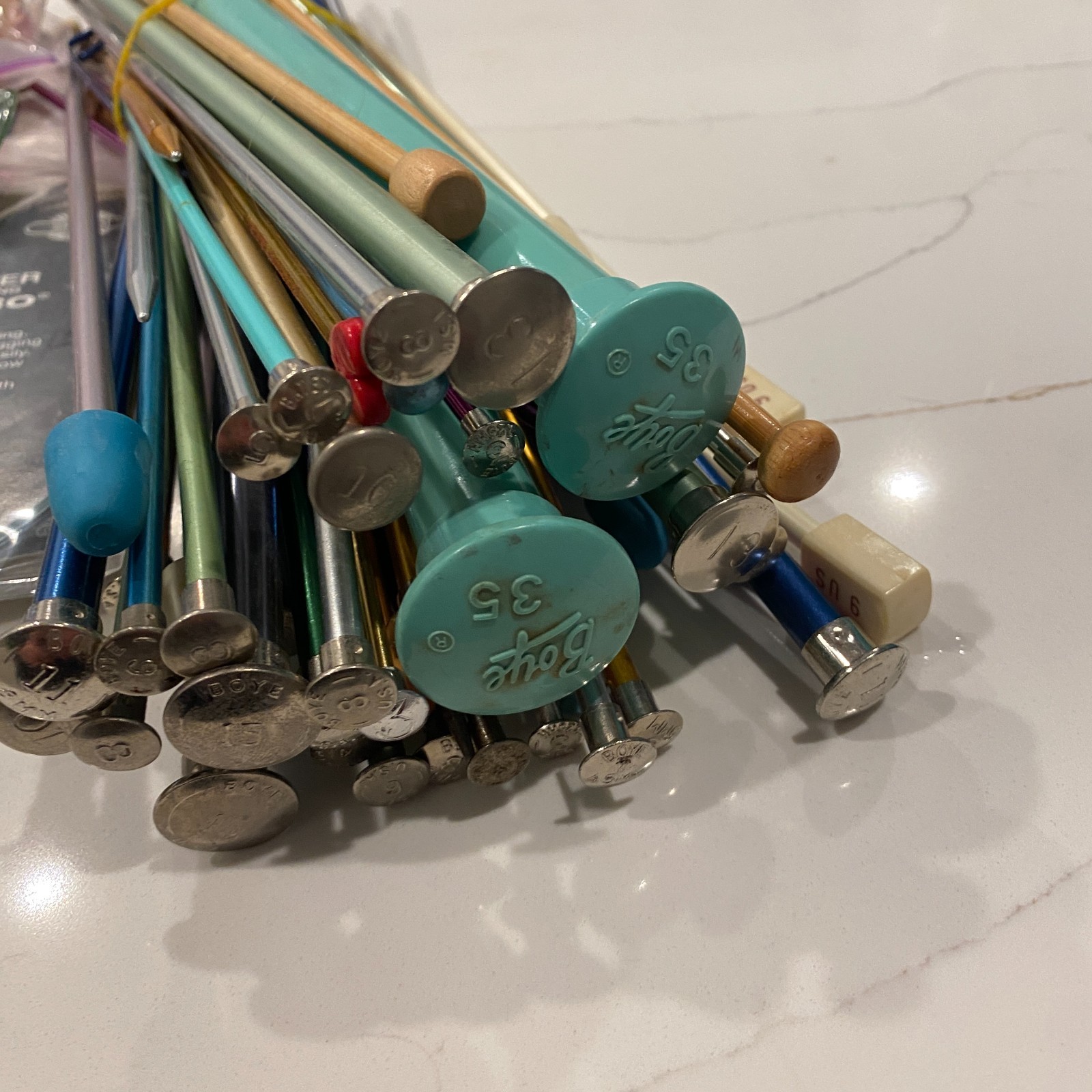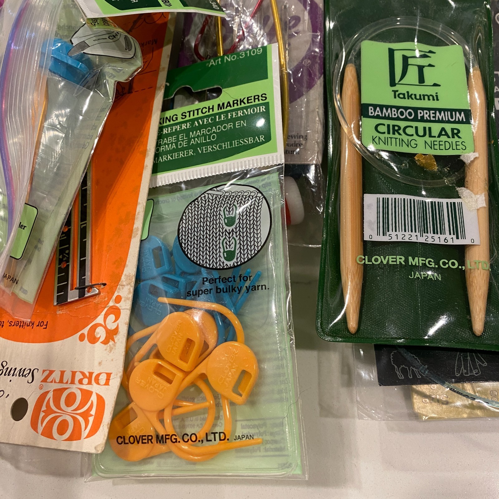 Lot of Knitting Needles, Gauges, Crochet Hooks, Stitch Markers, Yarn Needles