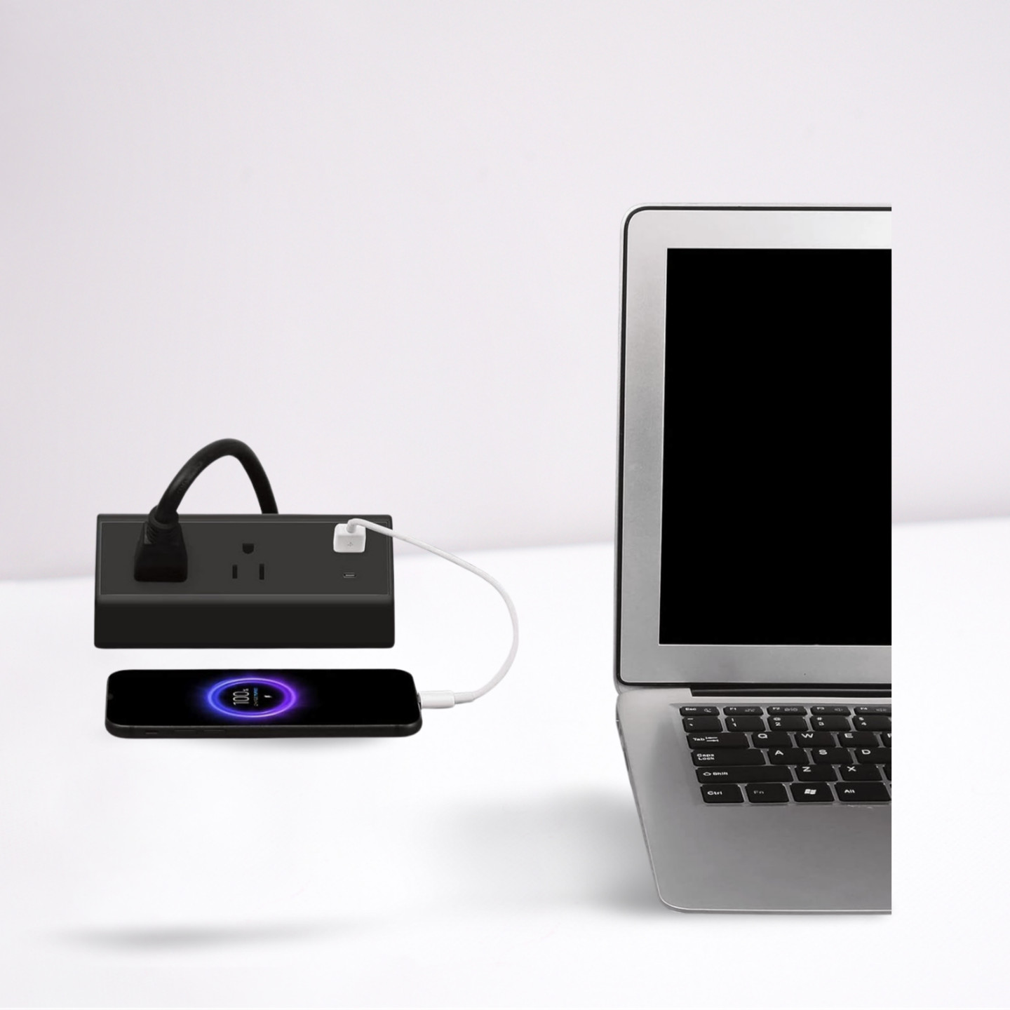 Desk Power Strip 18W USB-C Fast Charge 6FT Surge Protector Clamp Black