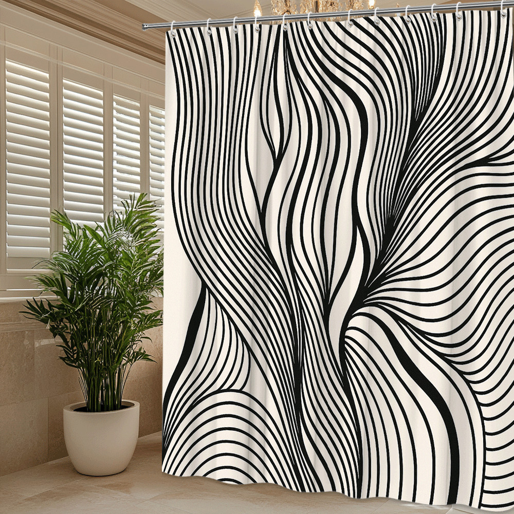 Stylish Black and White Shower Curtain with Modern Wave Design