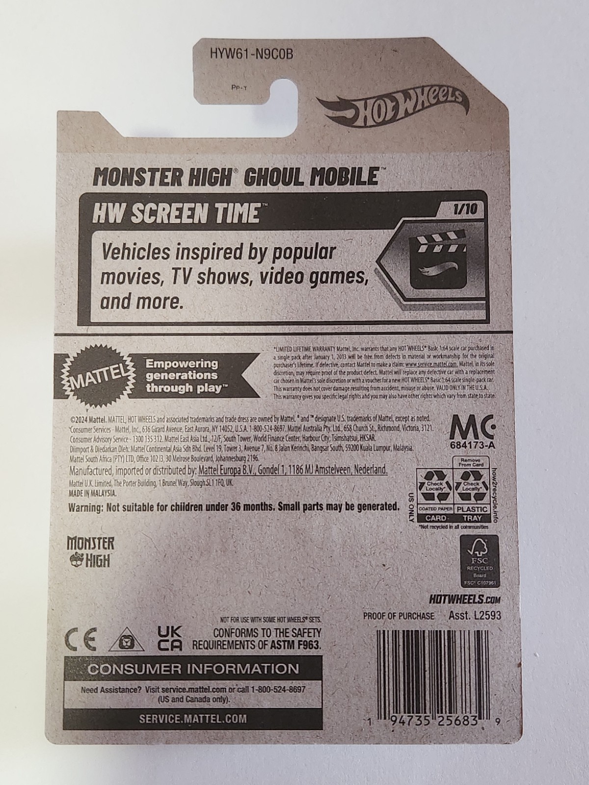 2024 Hot Wheels Monster High Ghoul Mobile 3/250 HW Screen Time 1/10