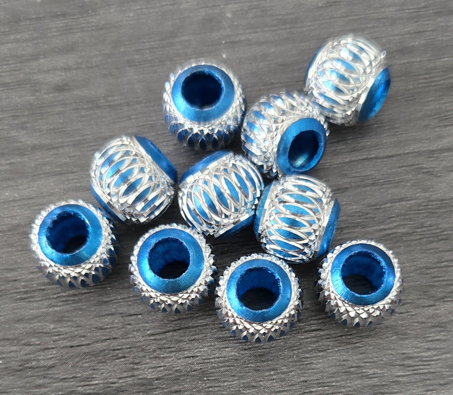 Set Of 10 Blue With Silver Bracelet Beads