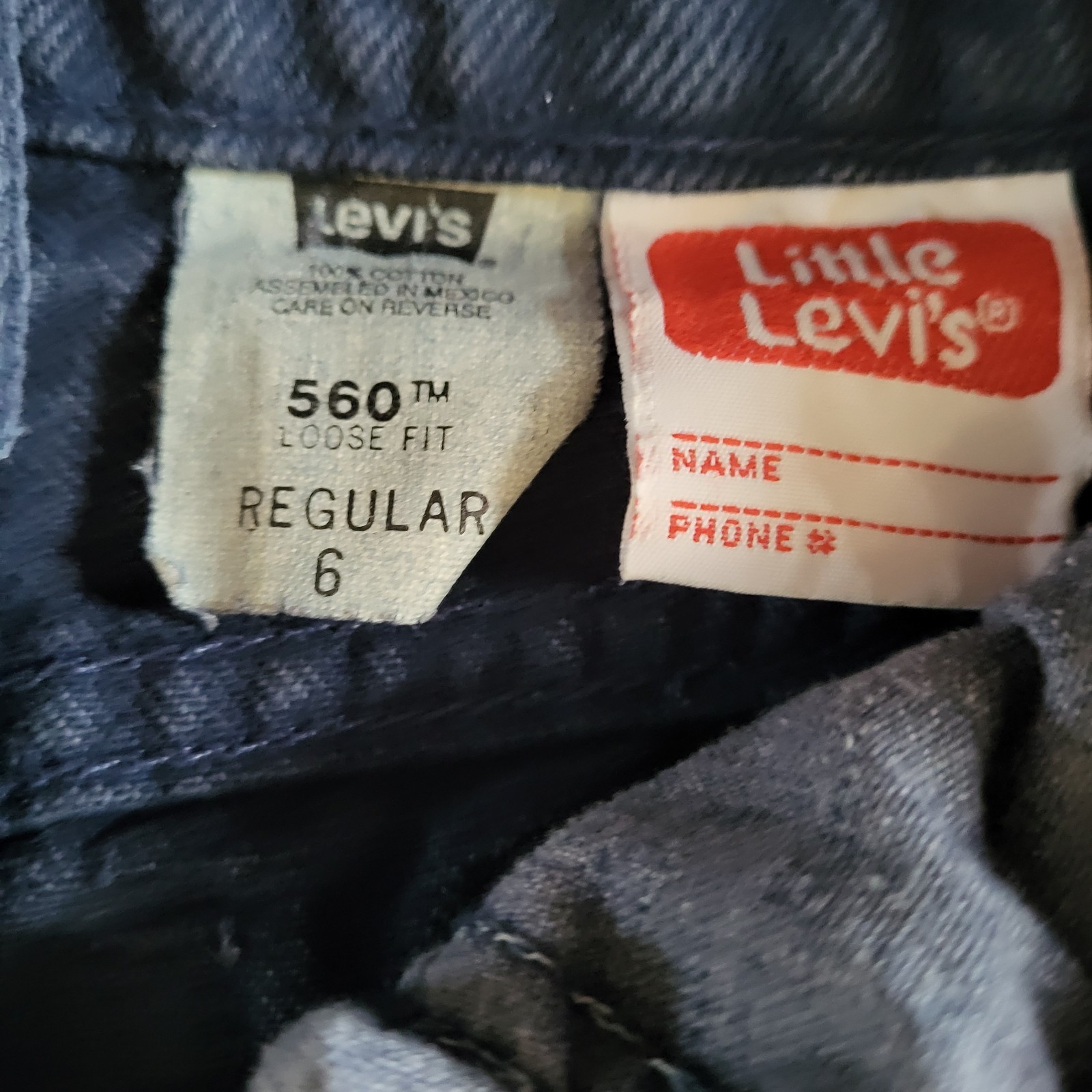 Vintage 90s Little Levi's 560 Jeans Kids 6 Dark Navy Orange Tab Loose Fit Denim
