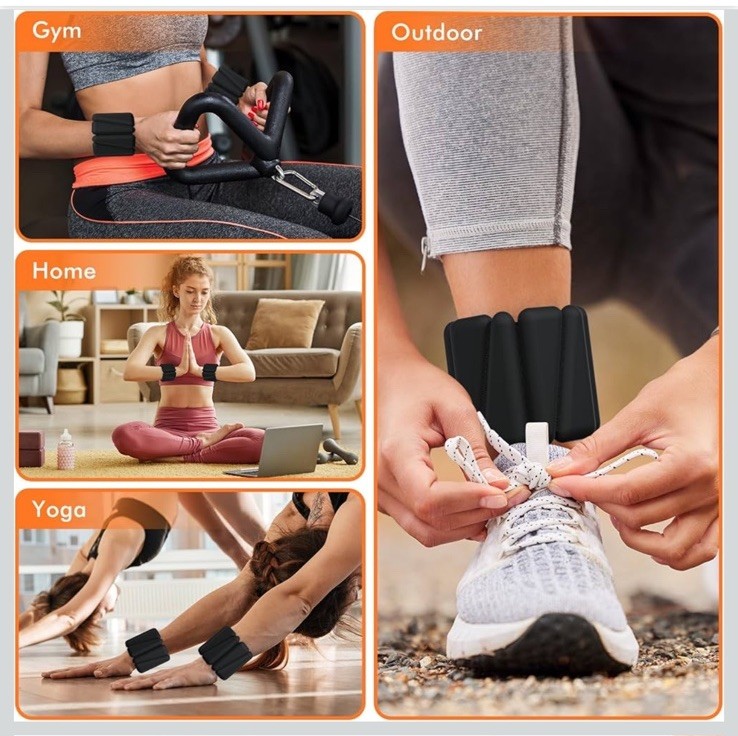 QTY 2 Wrist Ankle Weights, 1 lb. For Gym Workout - Black