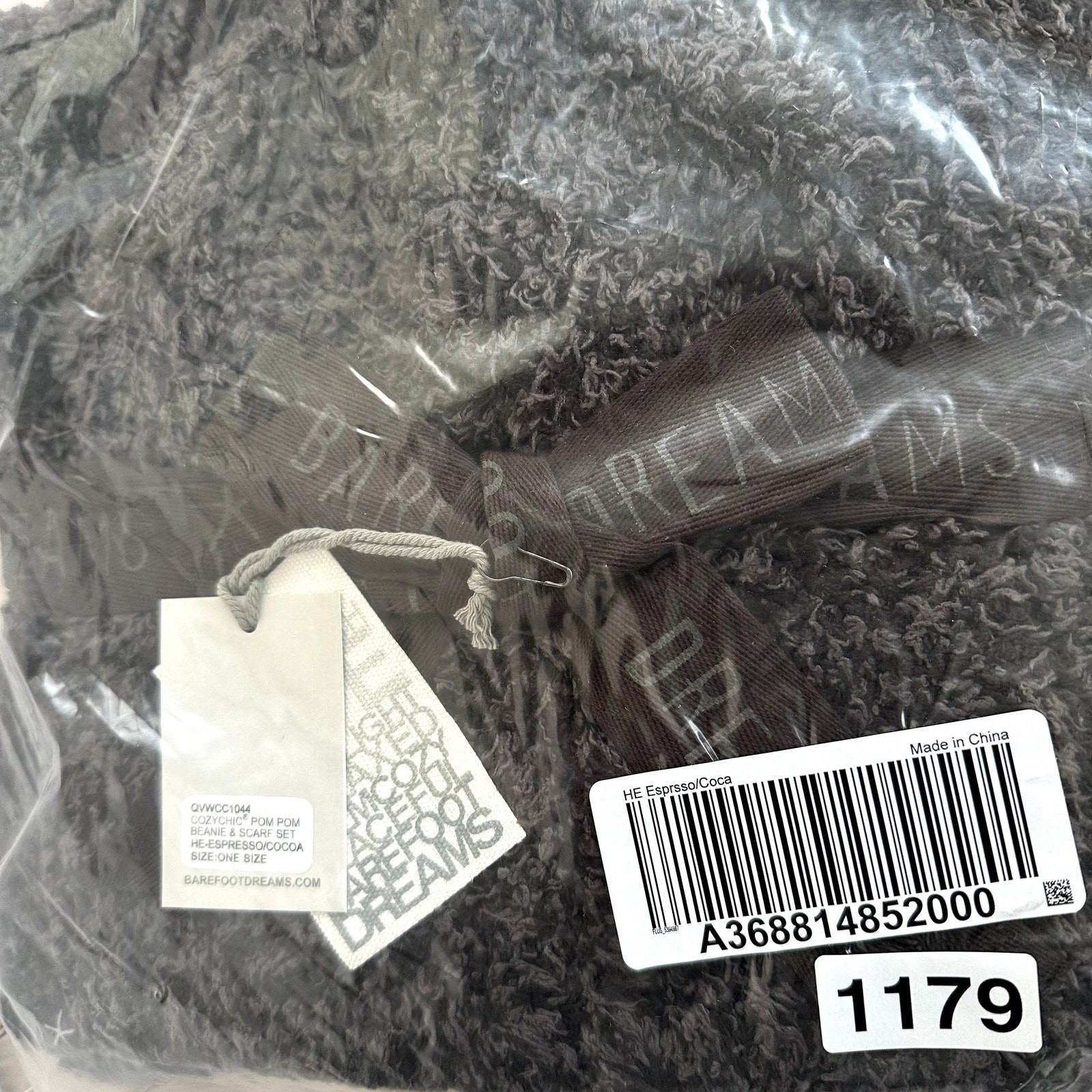 NWT Barefoot Dreams CozyChic Pom Pom Beanie Scarf Set Espresso Cocoa OS Gift