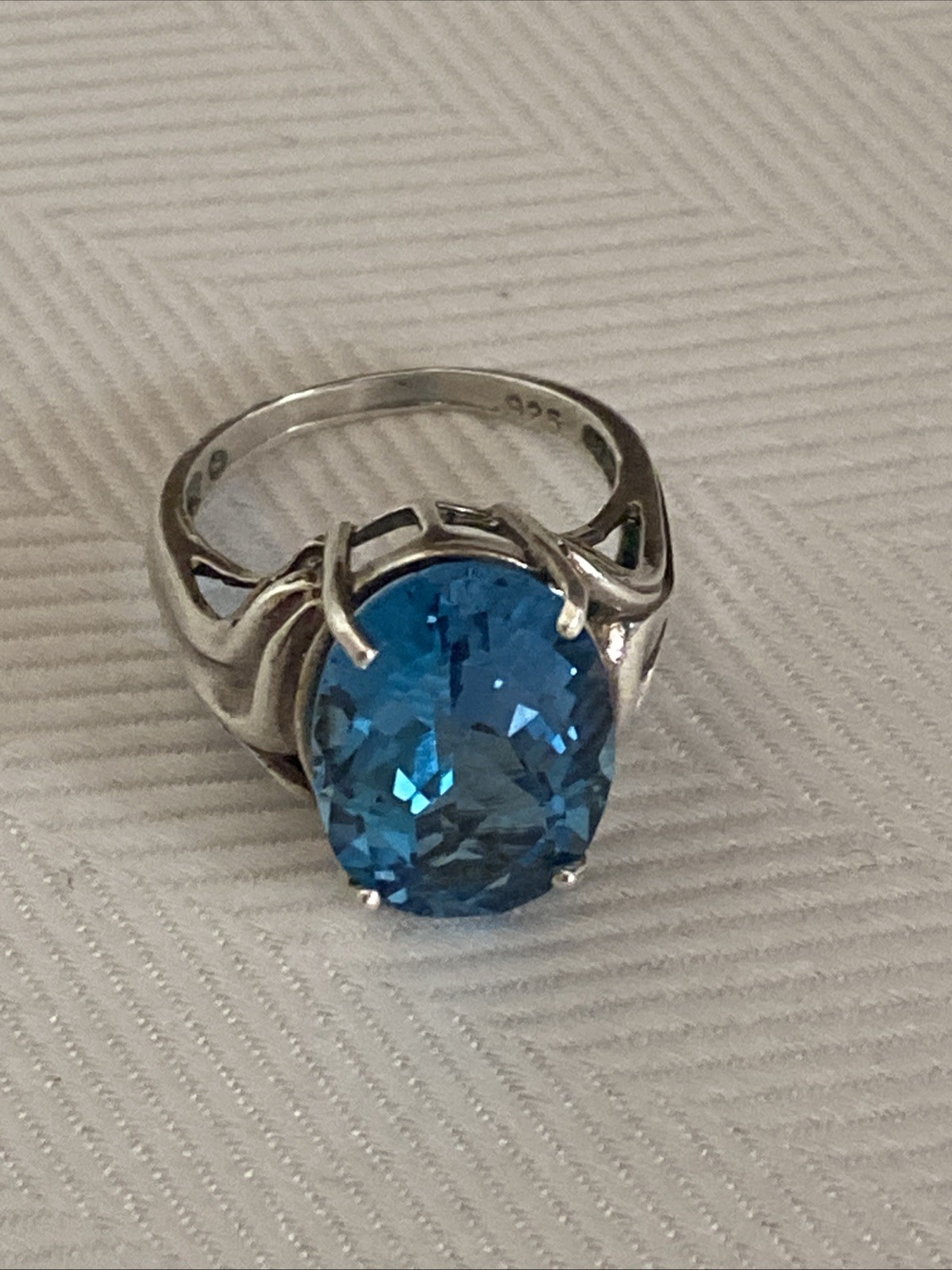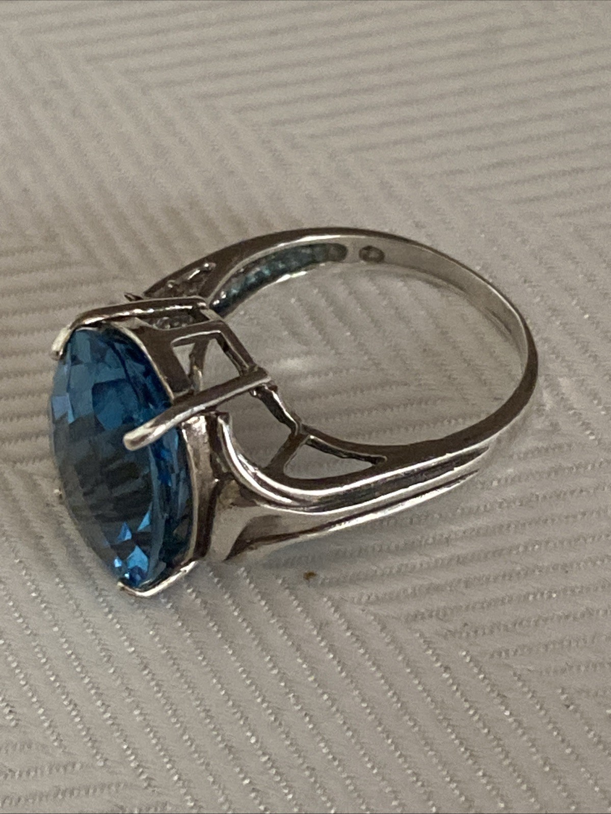 Designer Signed Vintage Sterling Silver Large Blue Faceted Topaz Ring Size 6 7/8