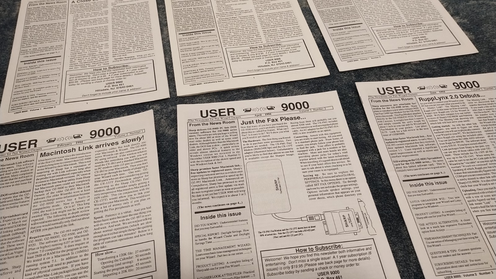 Sharp Wizard Organizer Newsletter - OZ-9600II - All 7 issues of User 9000