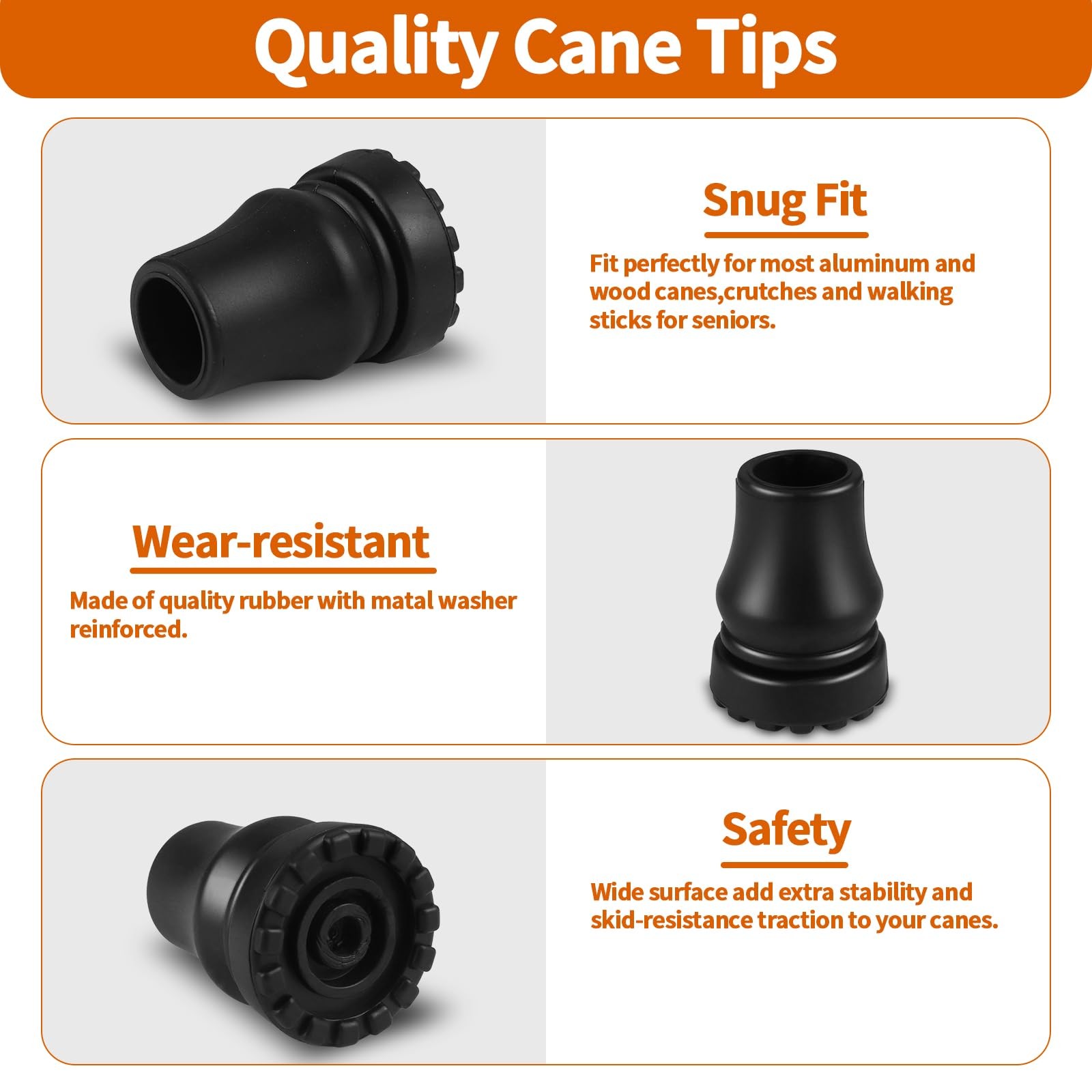 4Pcs Cane Tips 3/4 Inch Heavy Duty Rubber Cane Tips Anti Slip TPR Replacement.