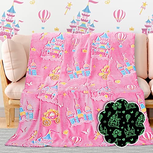 Glow in The Dark Princess Throw Size 50 x 60 130 x 150 cm Glow Pink Castle