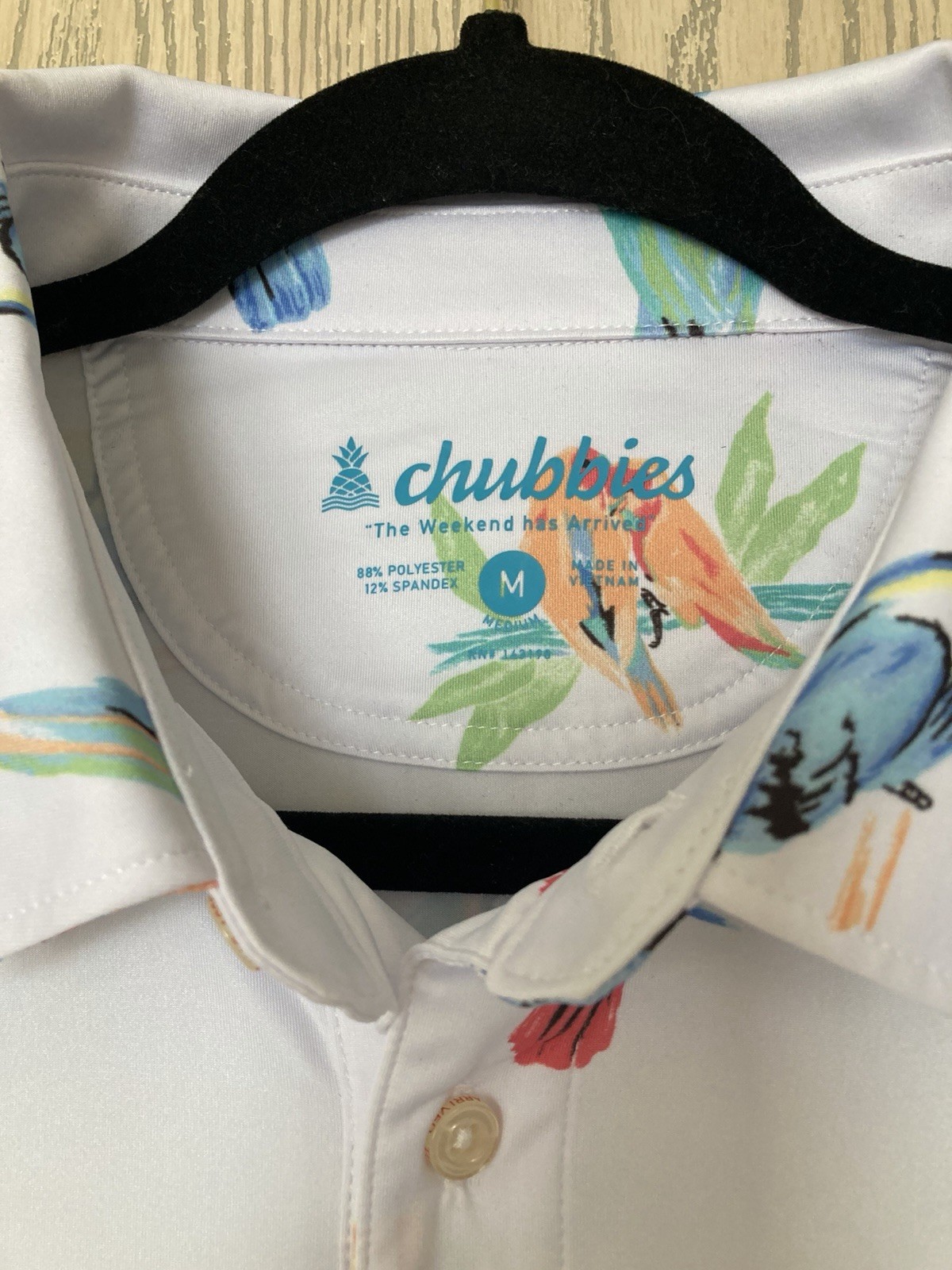 Chubbies Men's Performance Polo Shirt White Parrots medium NWT Tropical New