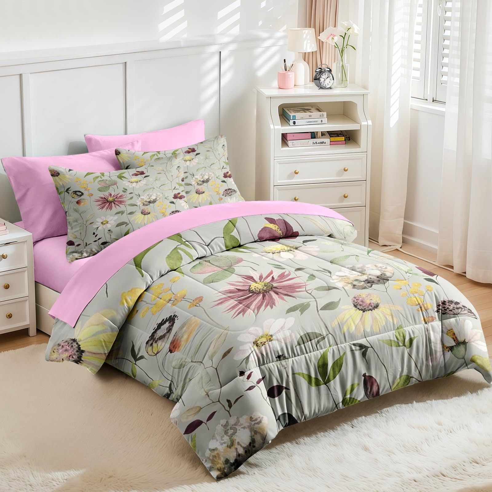 7 Pcs Comforter Set Queen Size, Flower Summer Spring Bedding Set for Kids and...