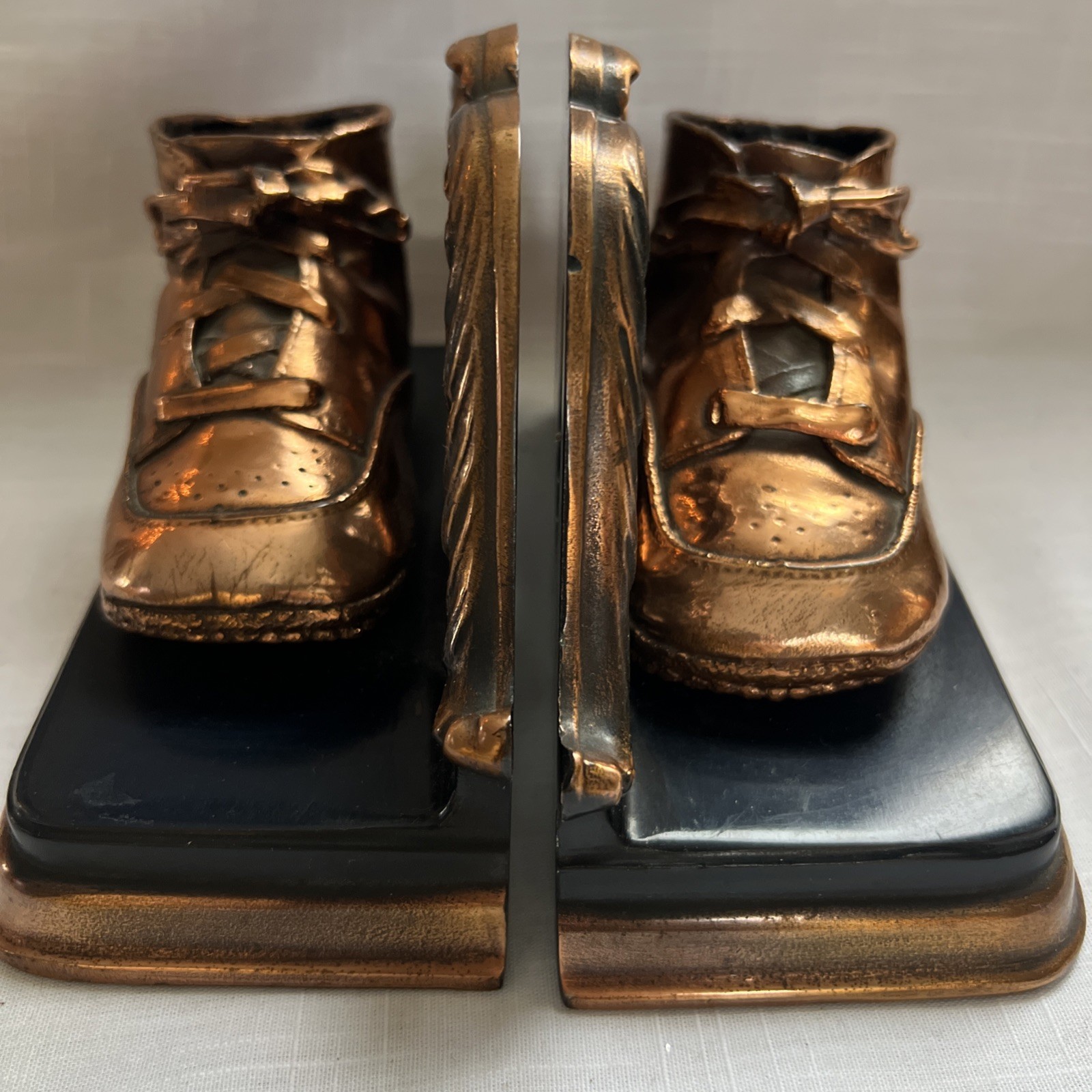• Vintage Bronzed Baby Shoes Bookends Ornate Heavy Nursery Decor Copper