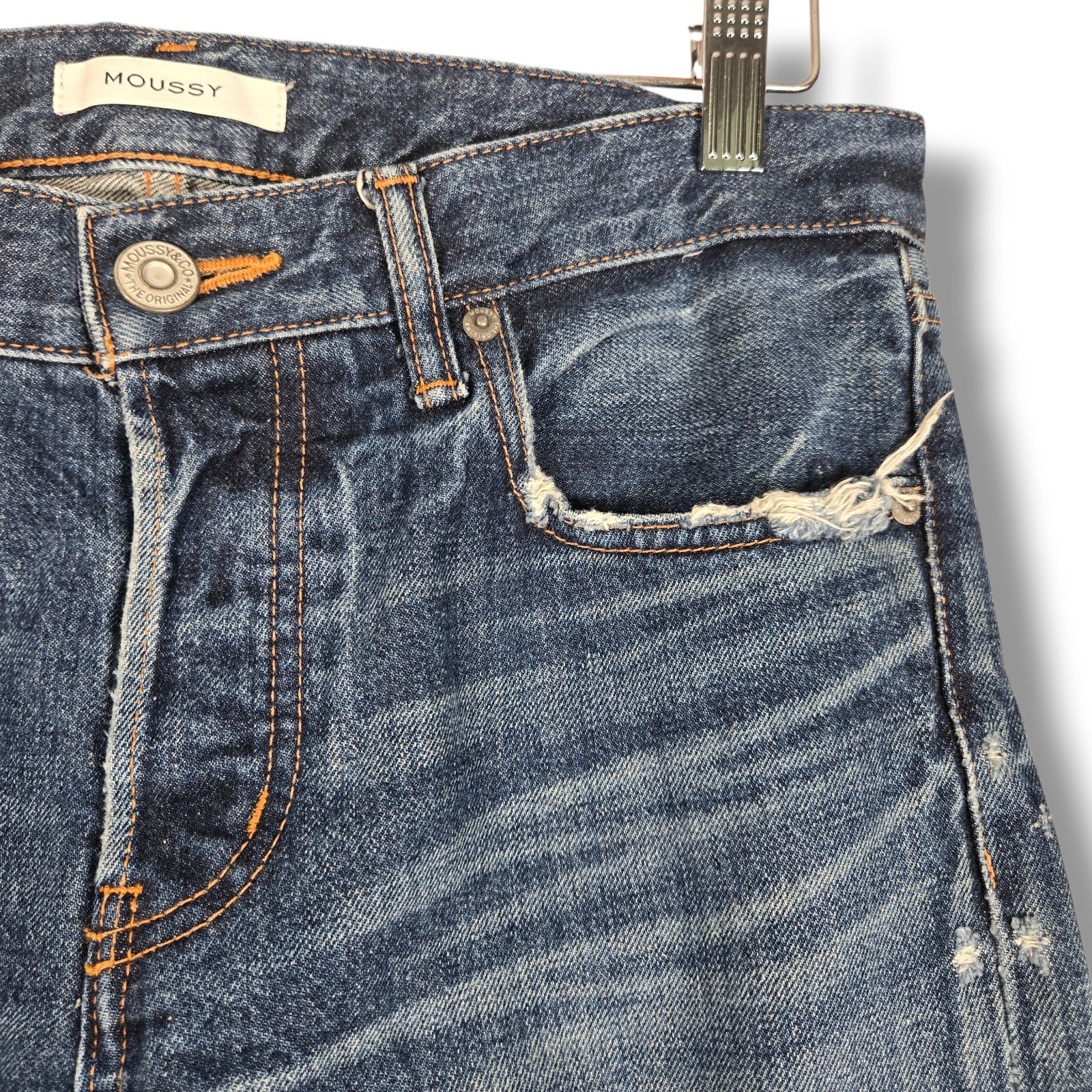 Moussy Dark Wash Slim Jeans Distressed Raw Hem Japanese Made Vintage Size 27