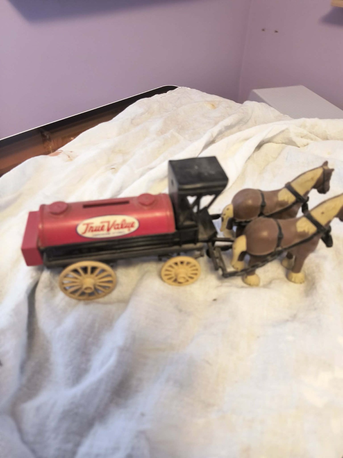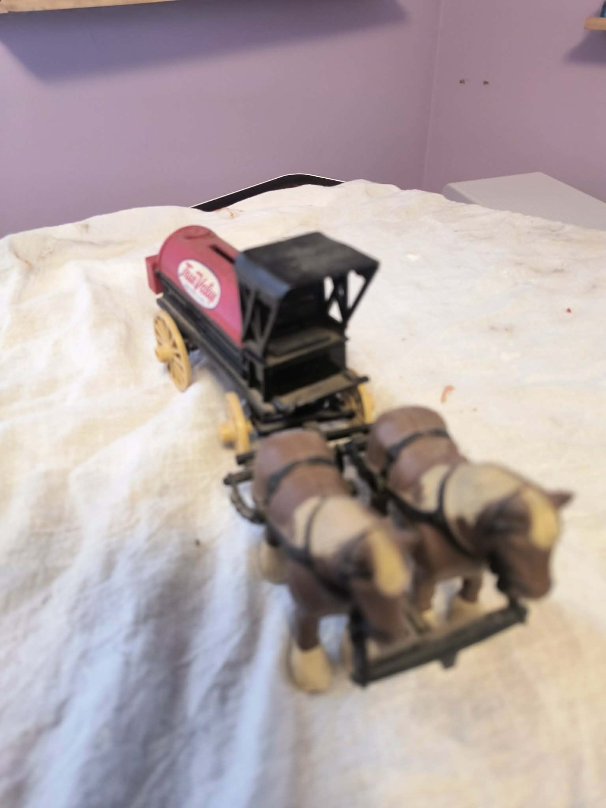 как выглядит VINTAGE ERTL 9 Horse Drawn True Value Bank Wagon key missing фото