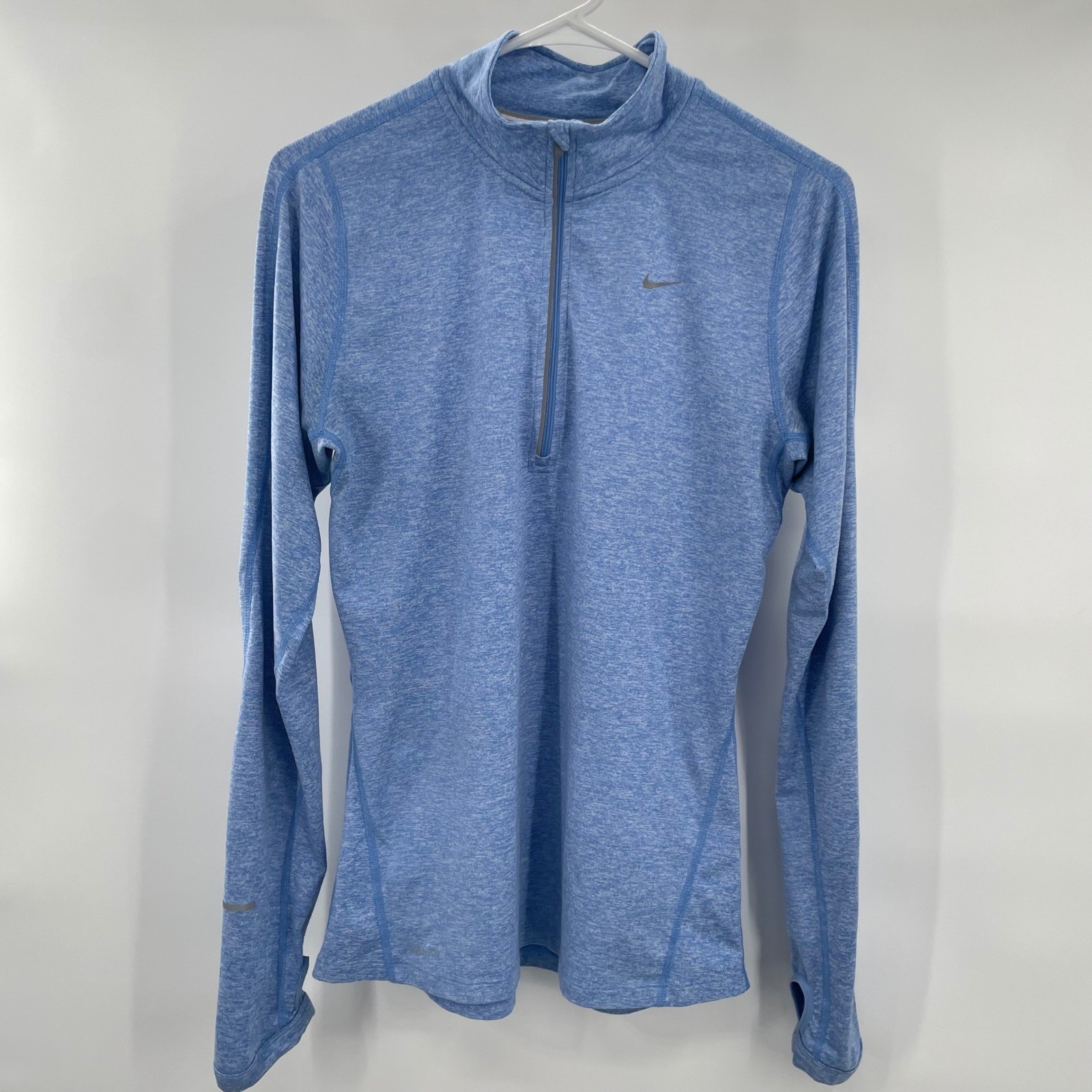 как выглядит Nike Dri Fit Blue Heathered Pullover Running Jacket Thumbholes Women Size S фото