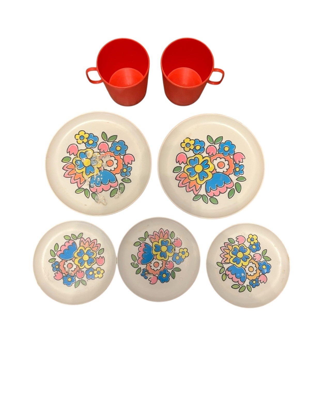 как выглядит CHILTON Plastic Children Play Kitchen VTG 60s MCM Plates Cup Retro Floral Toys фото