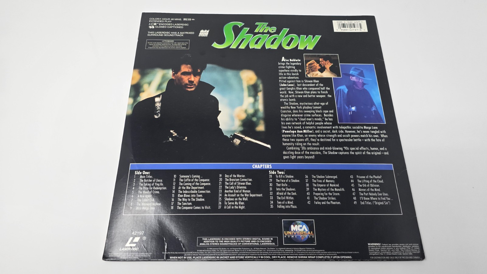 THE SHADOW Starring Alec Baldwin Laserdisc, 1994 Double Sided - Digital Stereo