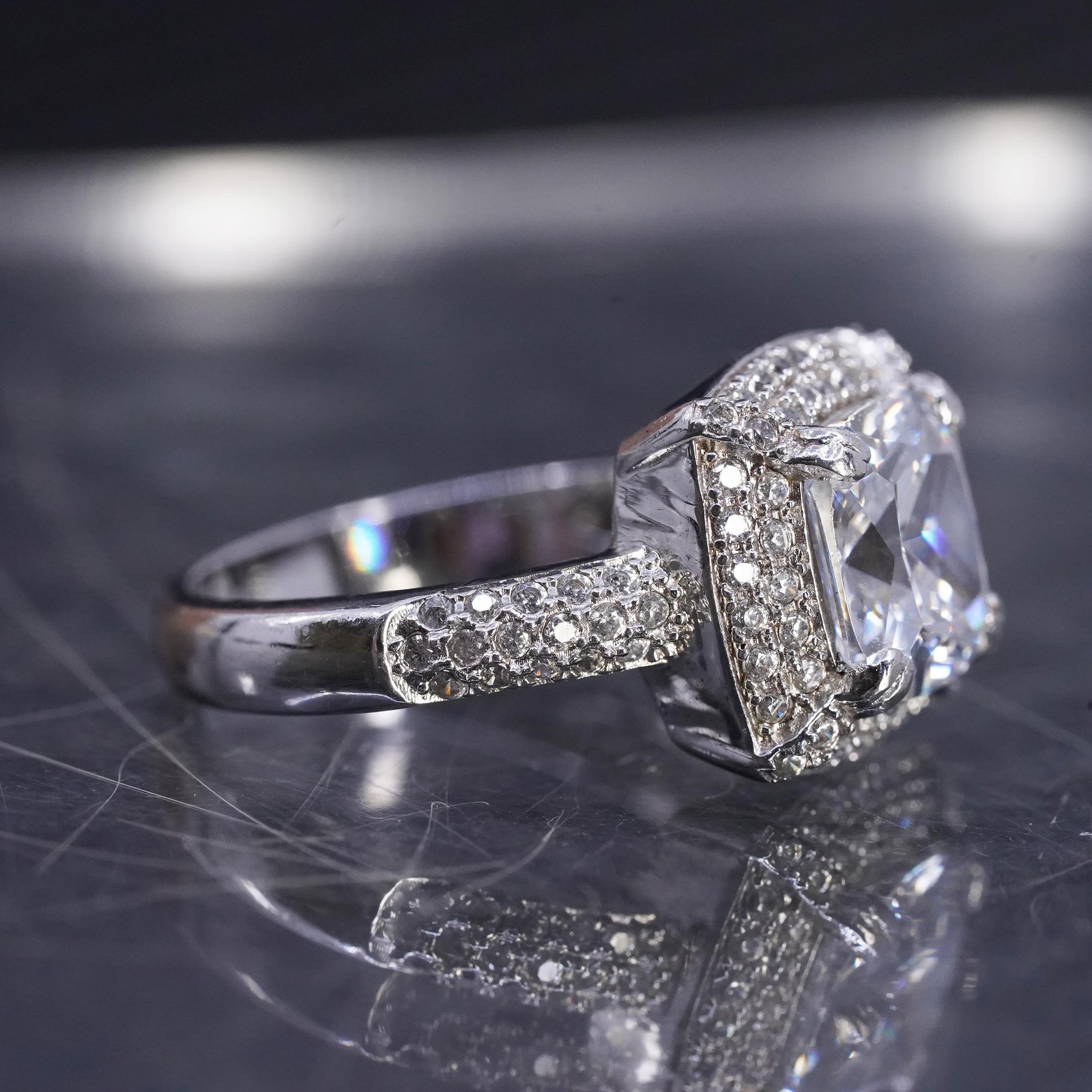как выглядит Size 5, vintage sterling silver 925 engagement ring with cz фото
