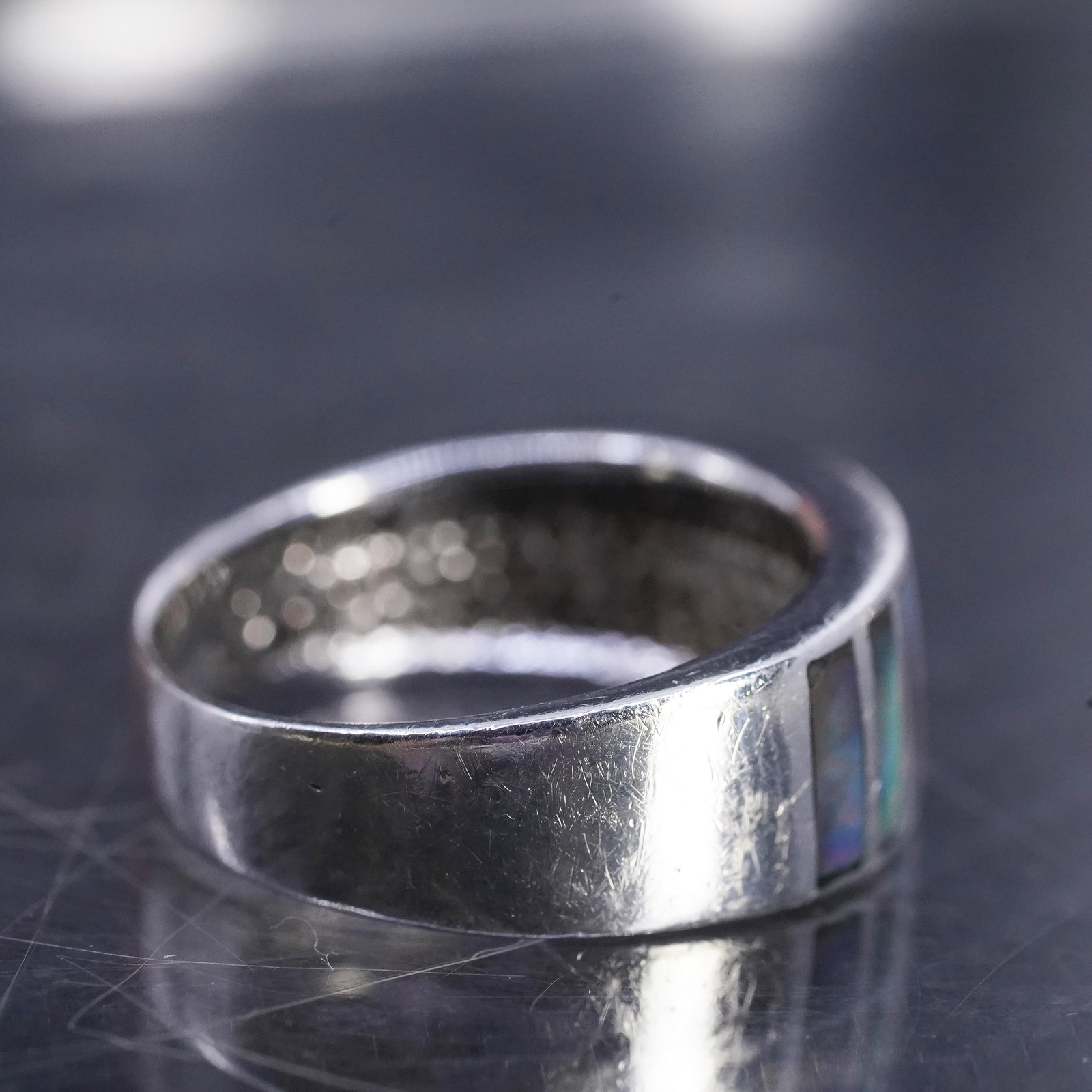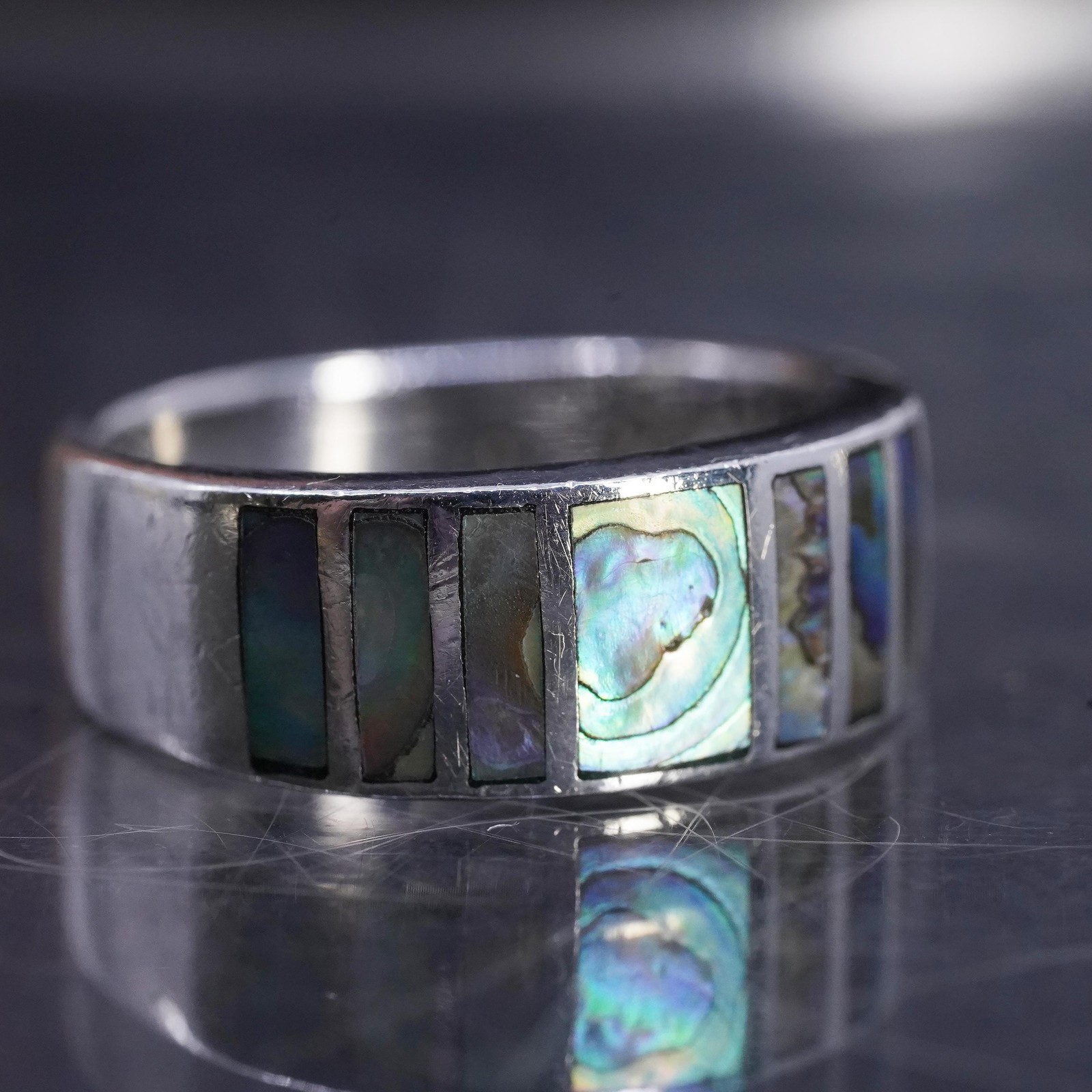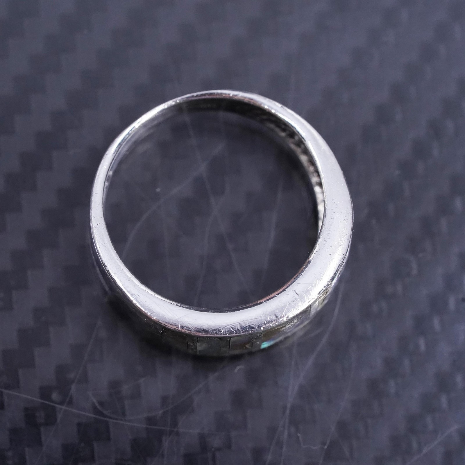 size 8 vintage sterling silver 925 handmade band ring with abalone inlay
