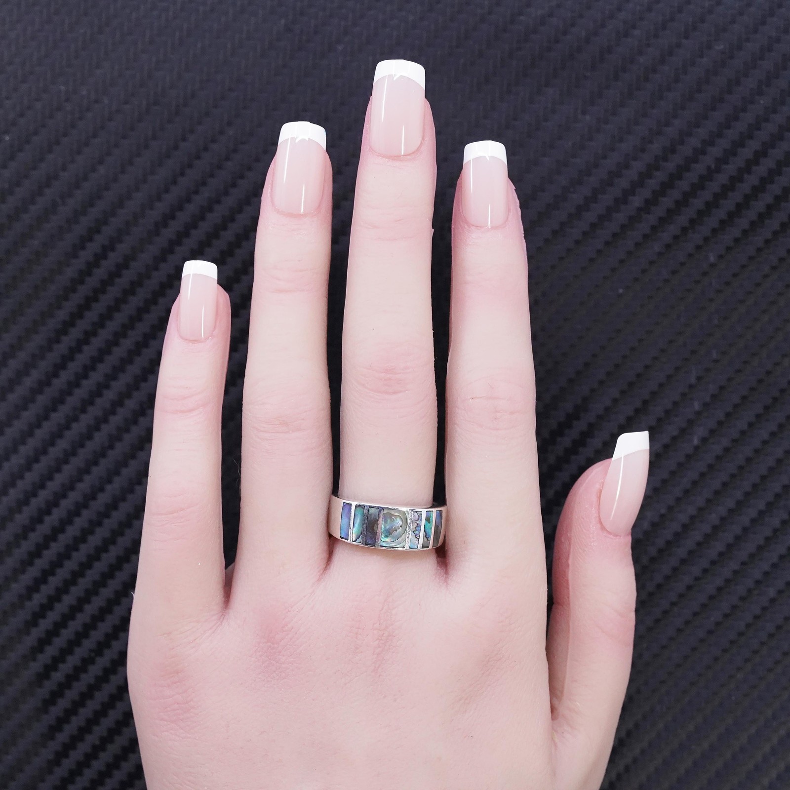 как выглядит size 8 vintage sterling silver 925 handmade band ring with abalone inlay фото