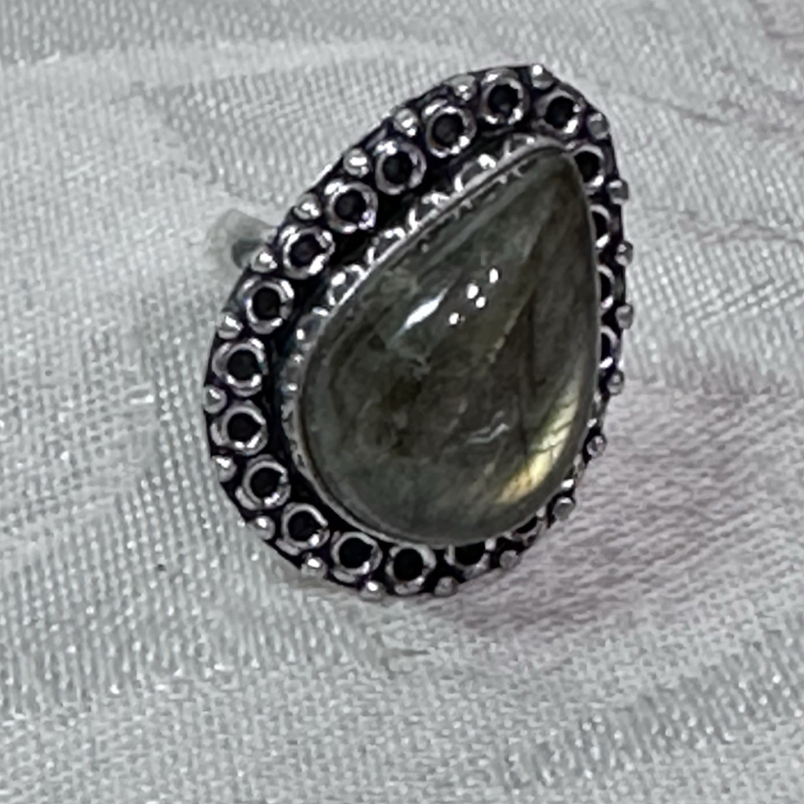 Ring Natural Labradorite Polished Bezel Set Natural Stone Size 7.25 Unisex