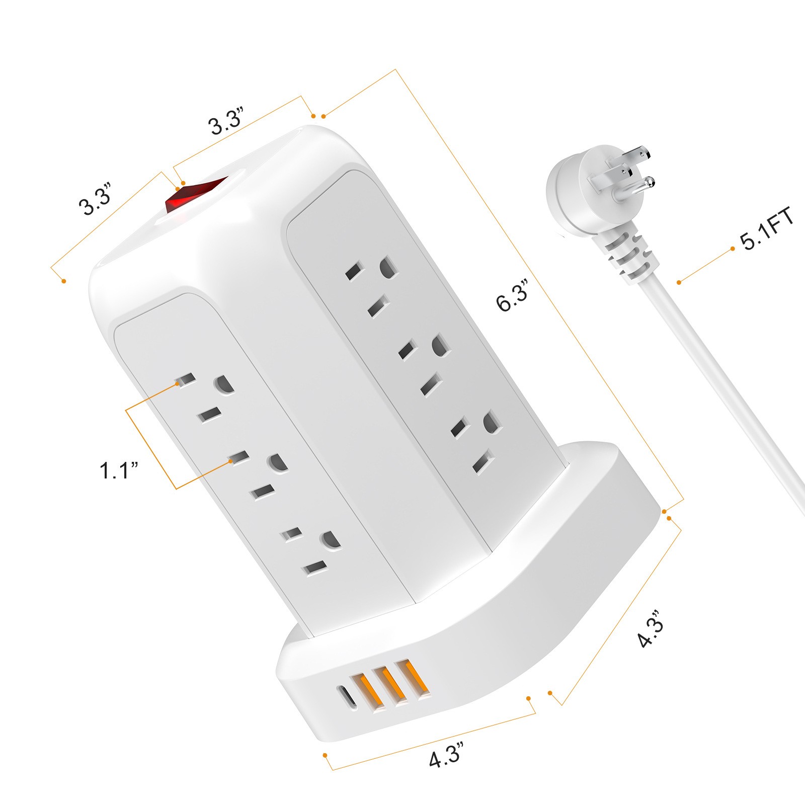 как выглядит 5FT Tower Power Strip with Individual Switches 12 Outlets 4 USB Ports 1 Type C фото