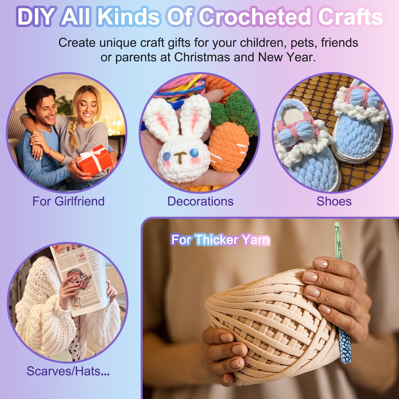 Large Crochet Hooks 10mm 9mm 8mm 7mm 6.5mm Crochet Hook Set for Crocheting, M...