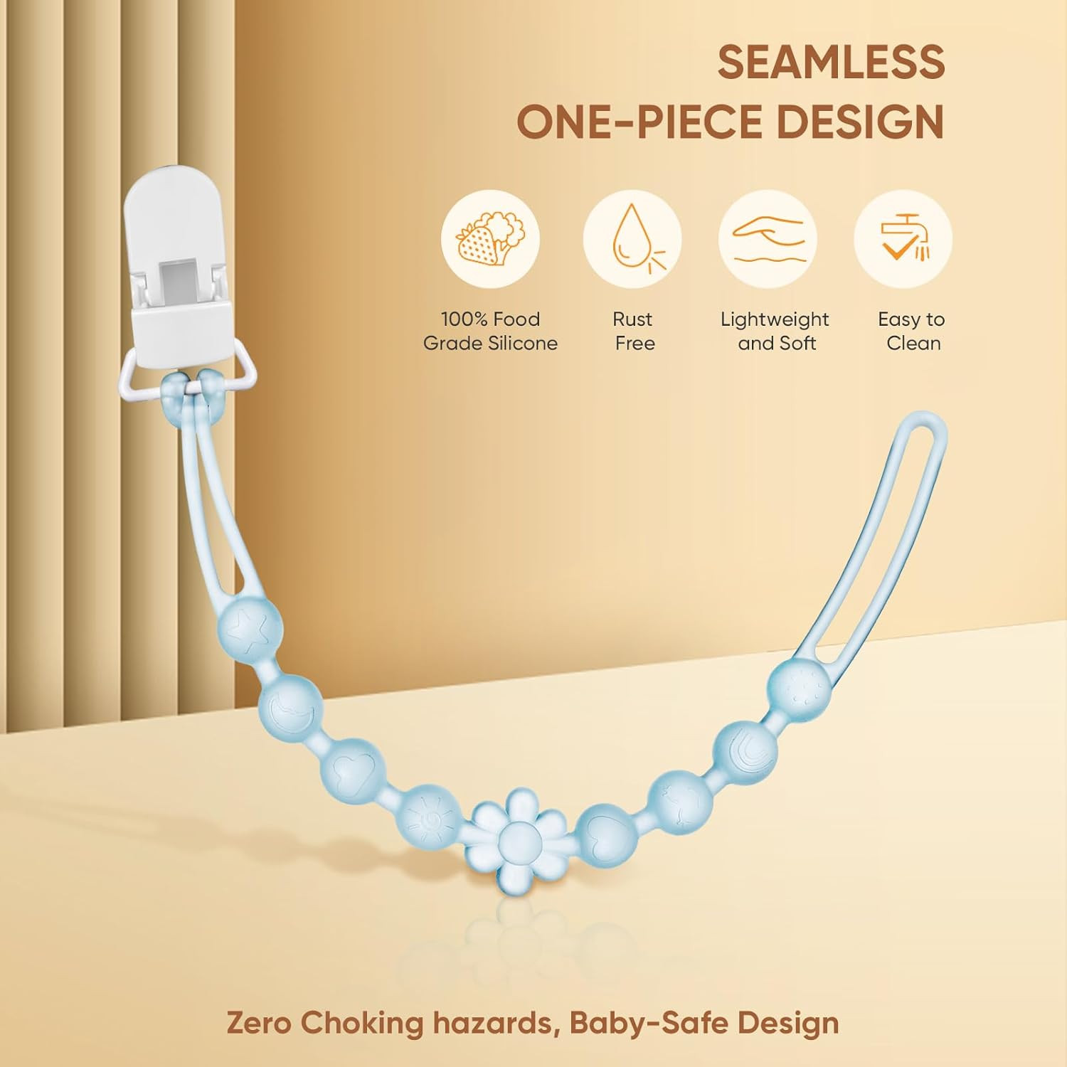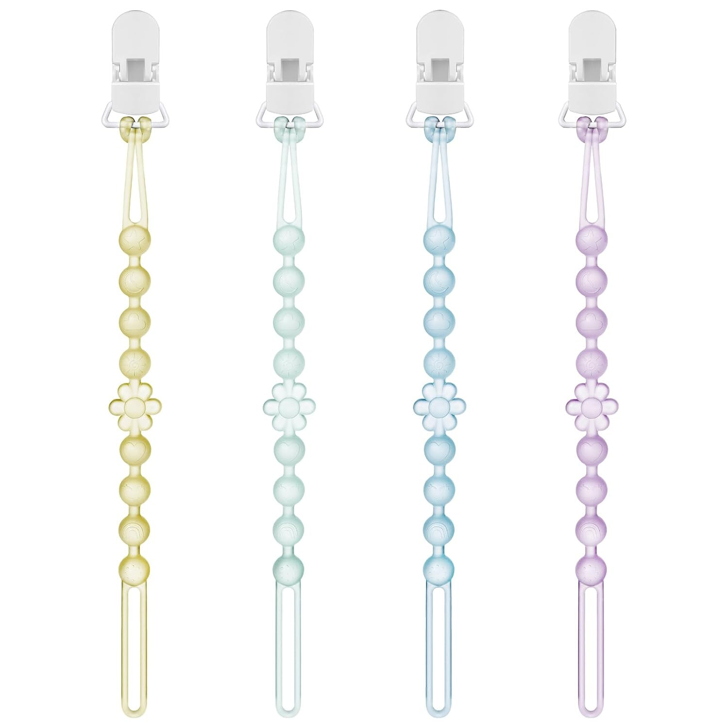 как выглядит Silicone Pacifier Clip Holder with One-Piece Beads, 4 Packs Soft Flexible and Ru фото