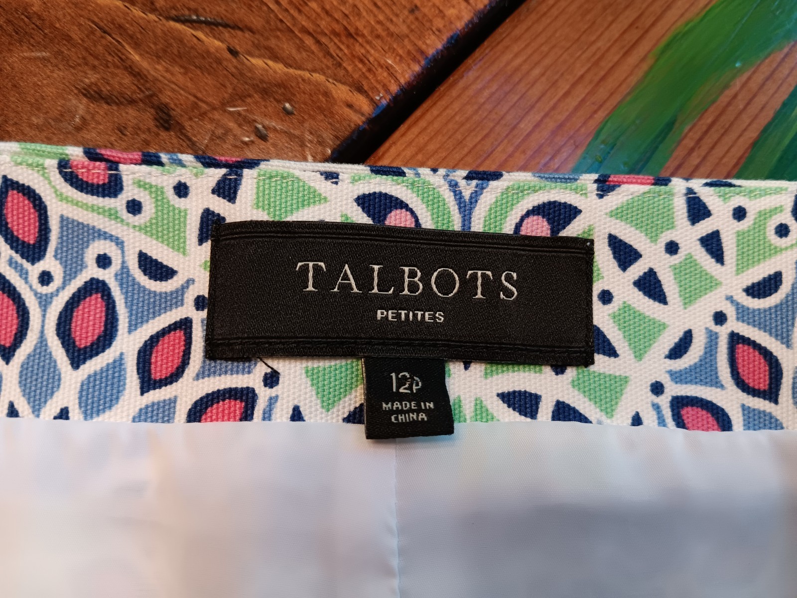 Talbots, Multicolor Geometric Print Skirt, Side Zip, Fully Lined, size 12P