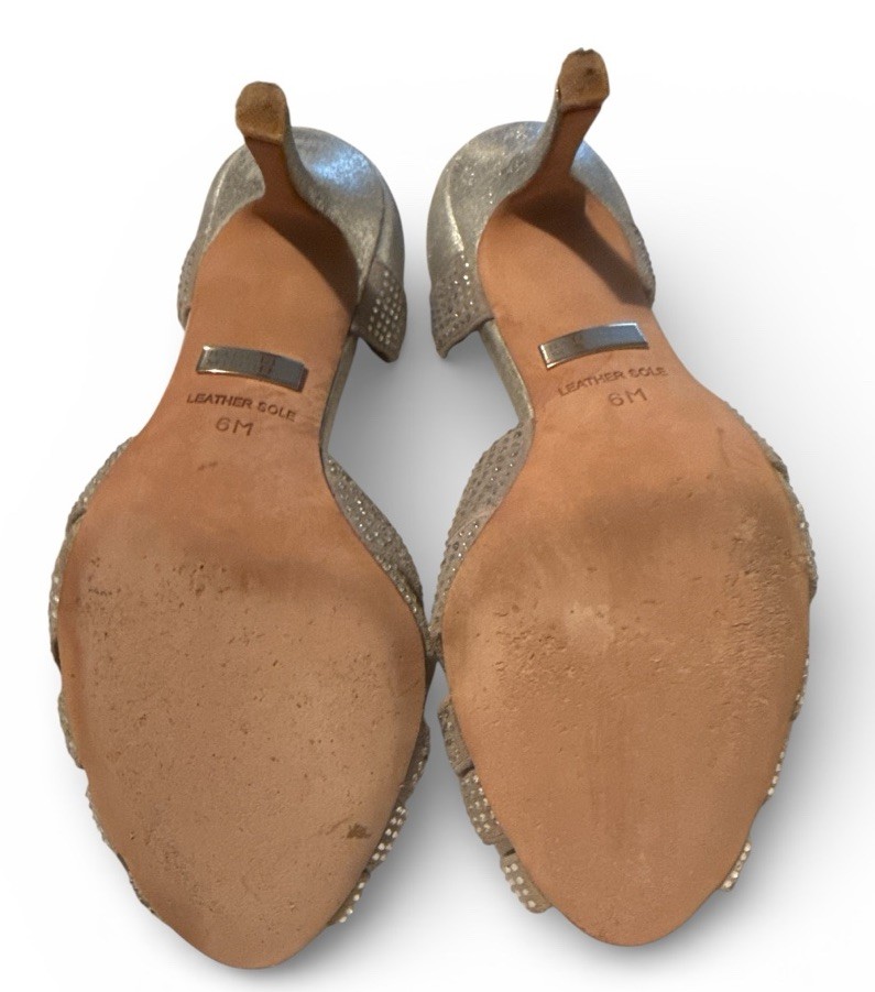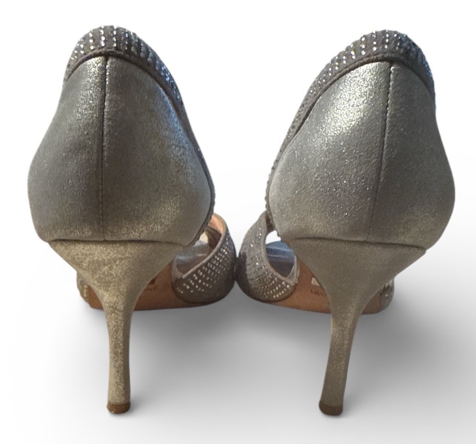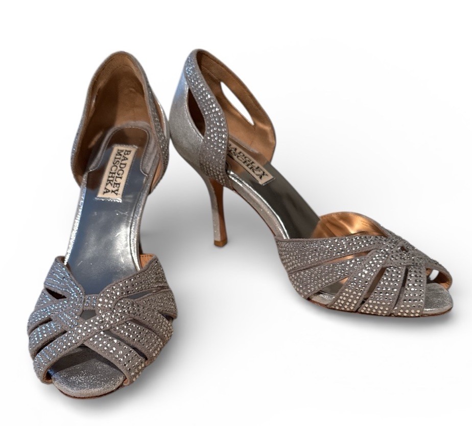 Badgley Mischka Tatiana Open Toe Pumps Silver Rhinestones Size 6 M