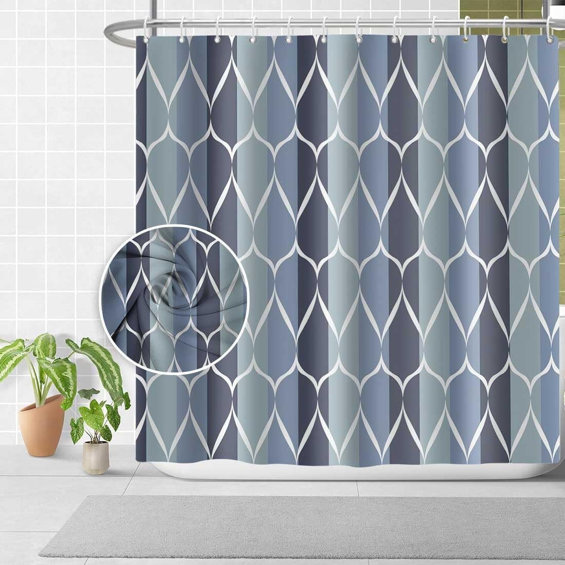 как выглядит Blue Shower Curtain RV Modern Waterproof Fabric Washable Set 47x64 Inches фото