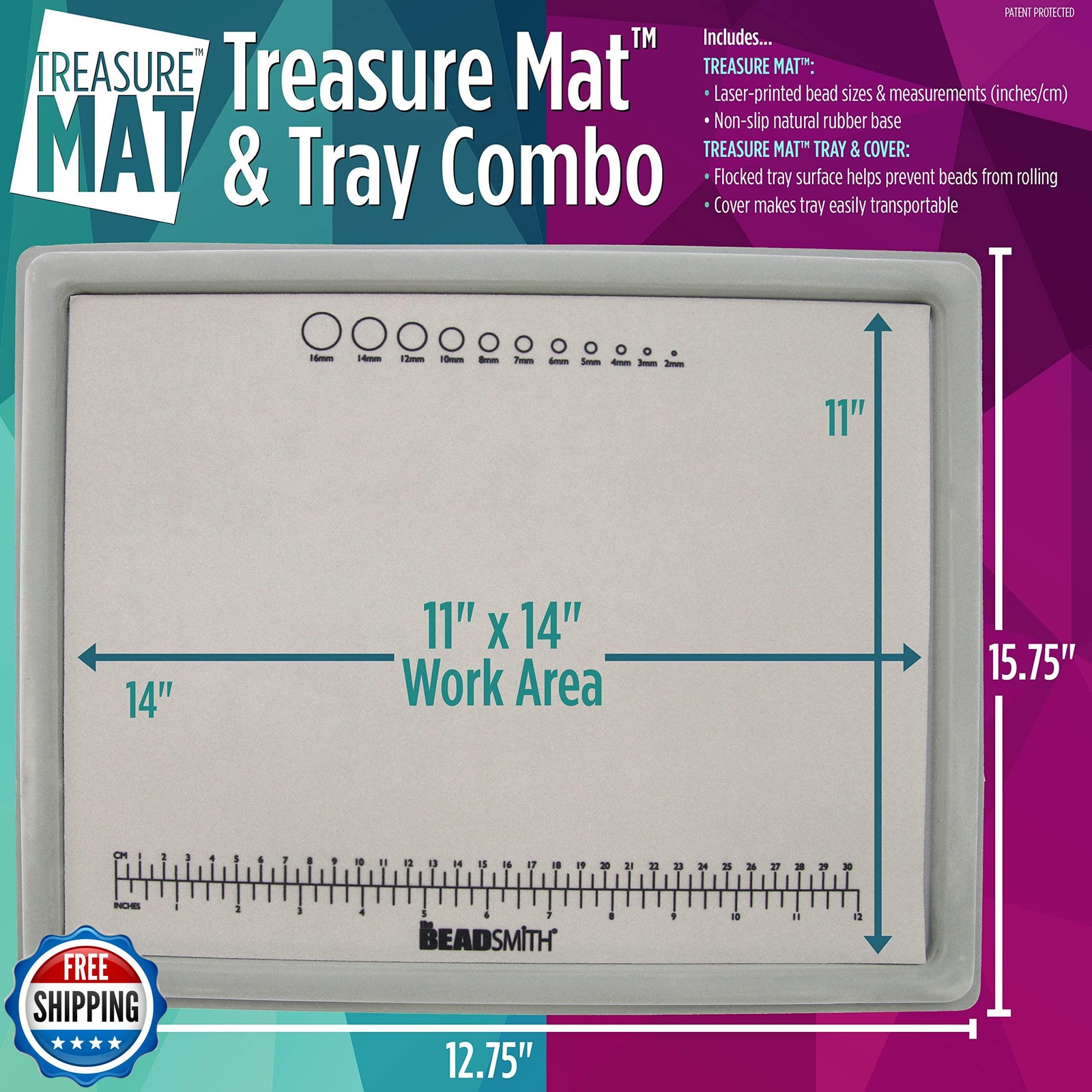 The Beadsmith Treasure Mat Tray and Mat - 11 x 14 Inches - Grey F