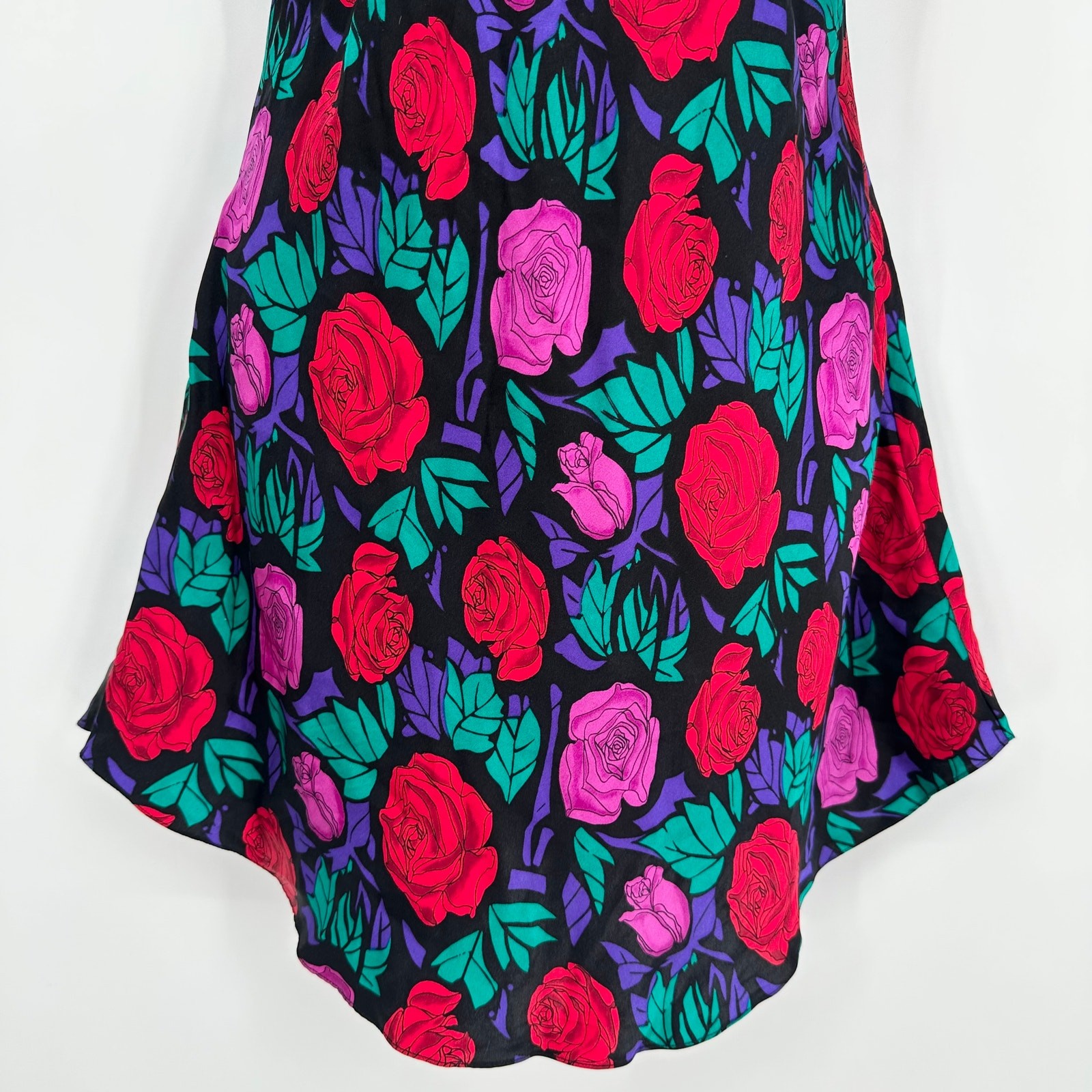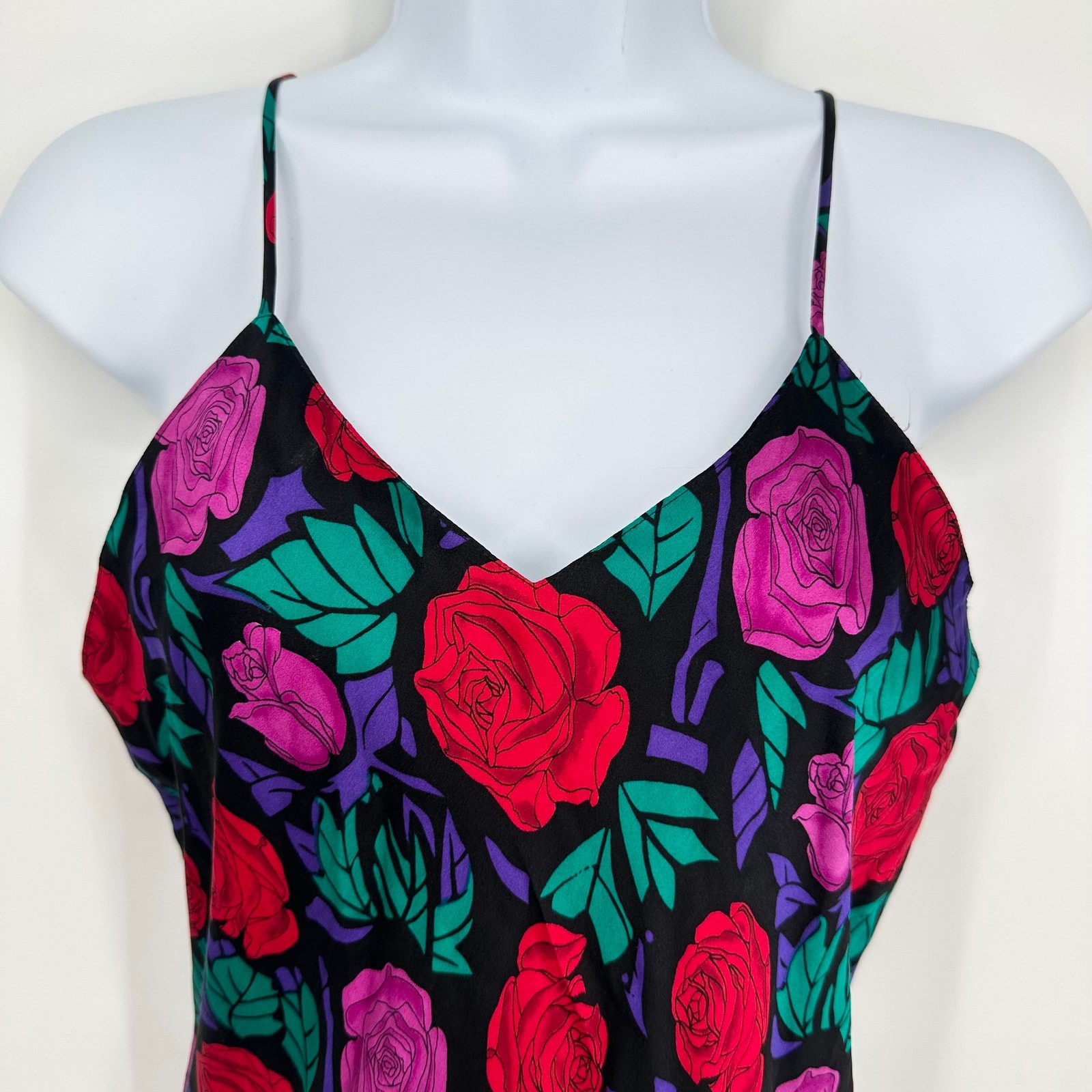 Vintage 90 s 100 Silk Satin Slip Dress Floral Spaghetti Strap Nightgown, Size M