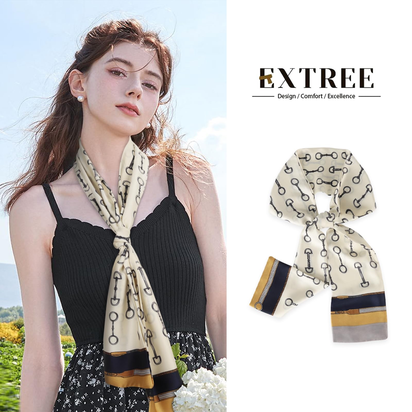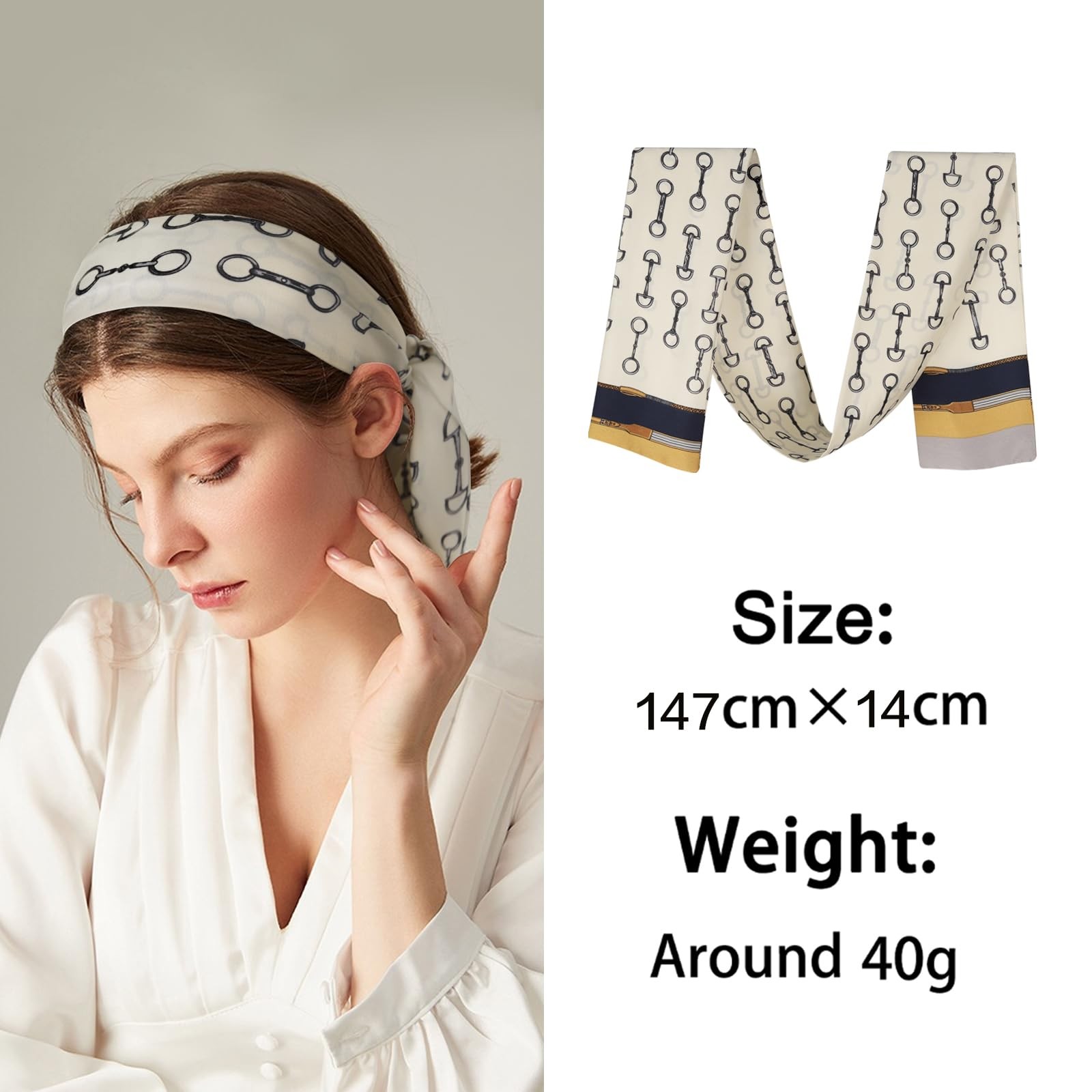 Satin Scarf Mulberry Silk Printed Head Wrap Hair Band 7x59 Inch Scarf