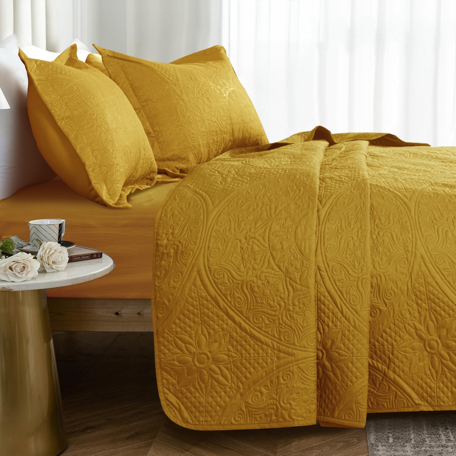 Luxury Bedspread 3 Piece Reversible Quilt Coverlet Bedding Set with Pillow Shams