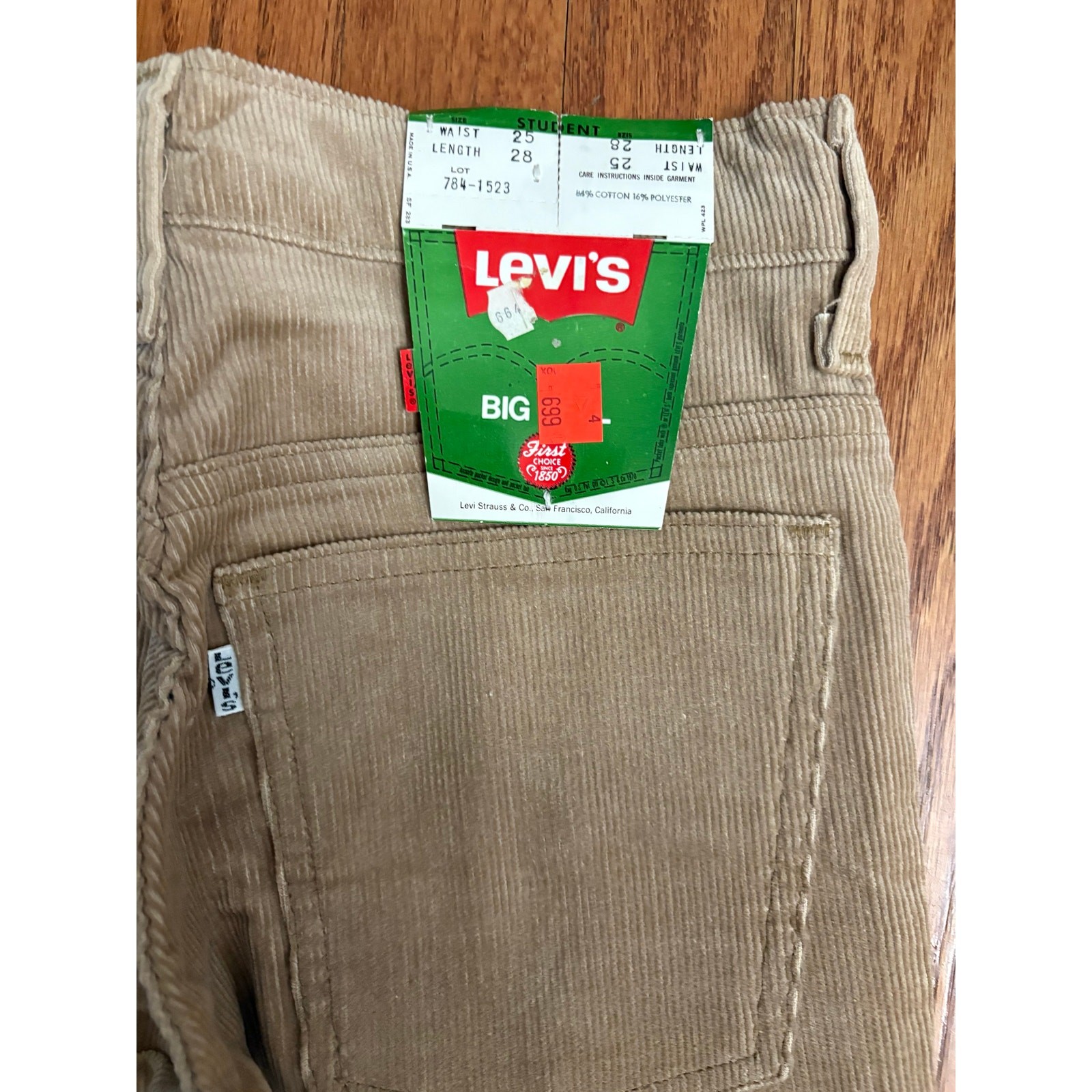 Vintage Levi s Big E Corduroy Pants Student Flare 70s Deadstock NWT- USA W25 L28