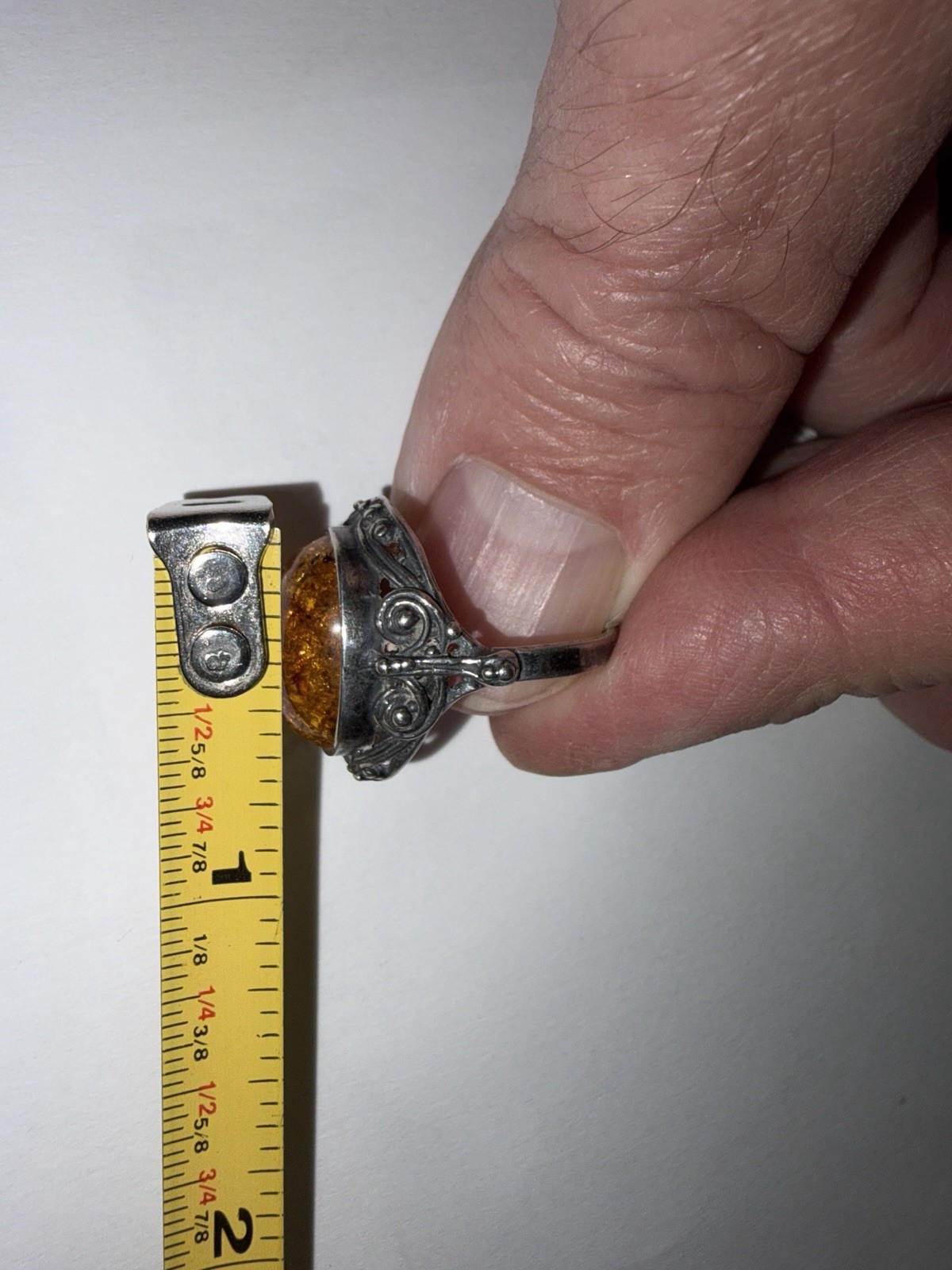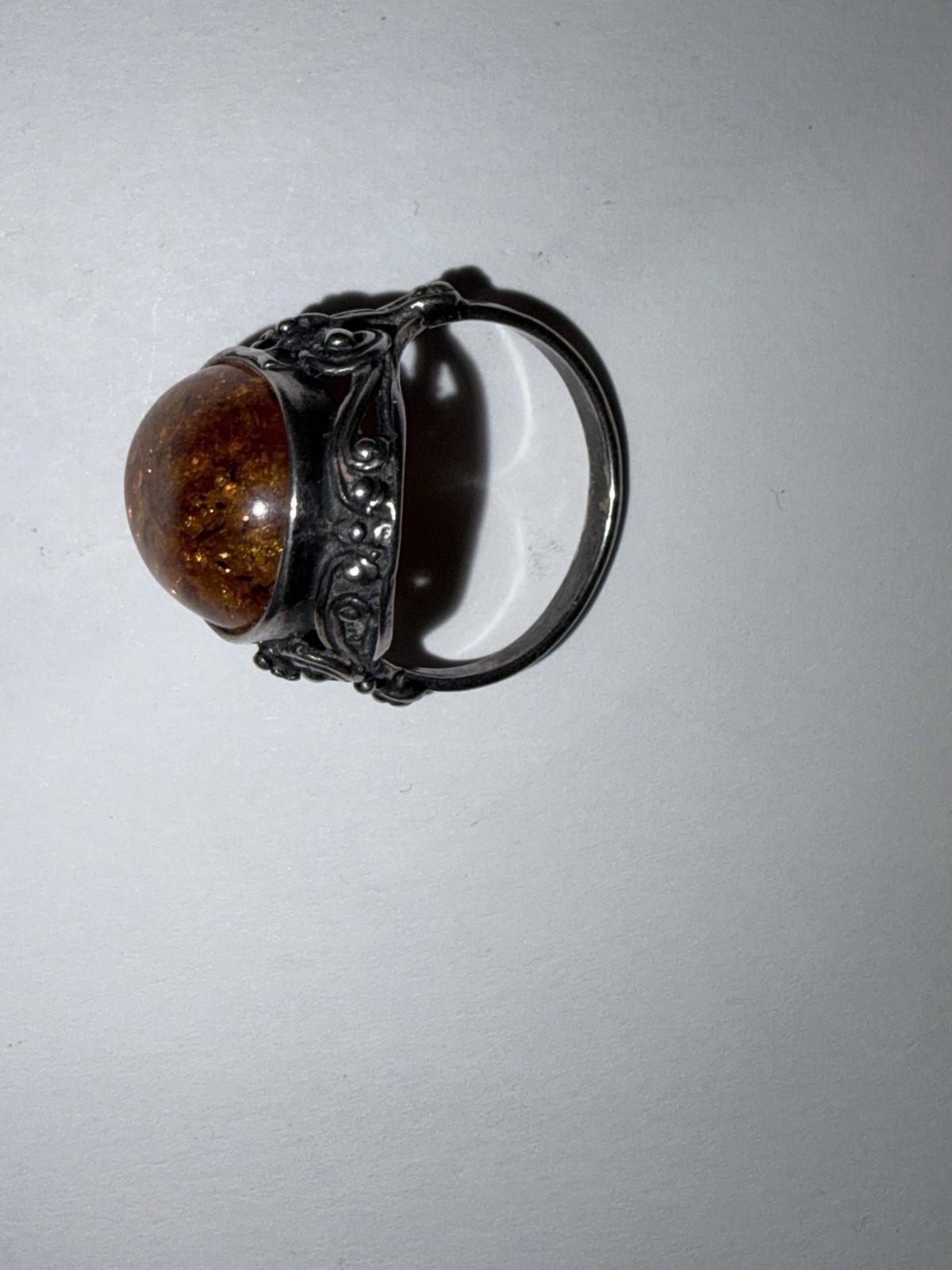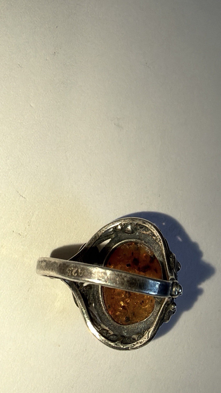 как выглядит Exquisite Vintage 925 Sterling Silver Honey Baltic Amber Ring, Size 6 фото