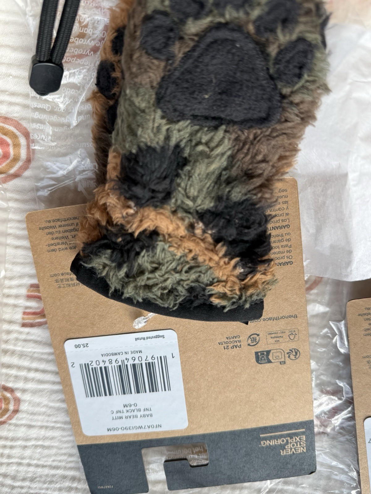 The North Face Baby Bear Fleece Mittens 0-6M Brown Black Green Animal Print