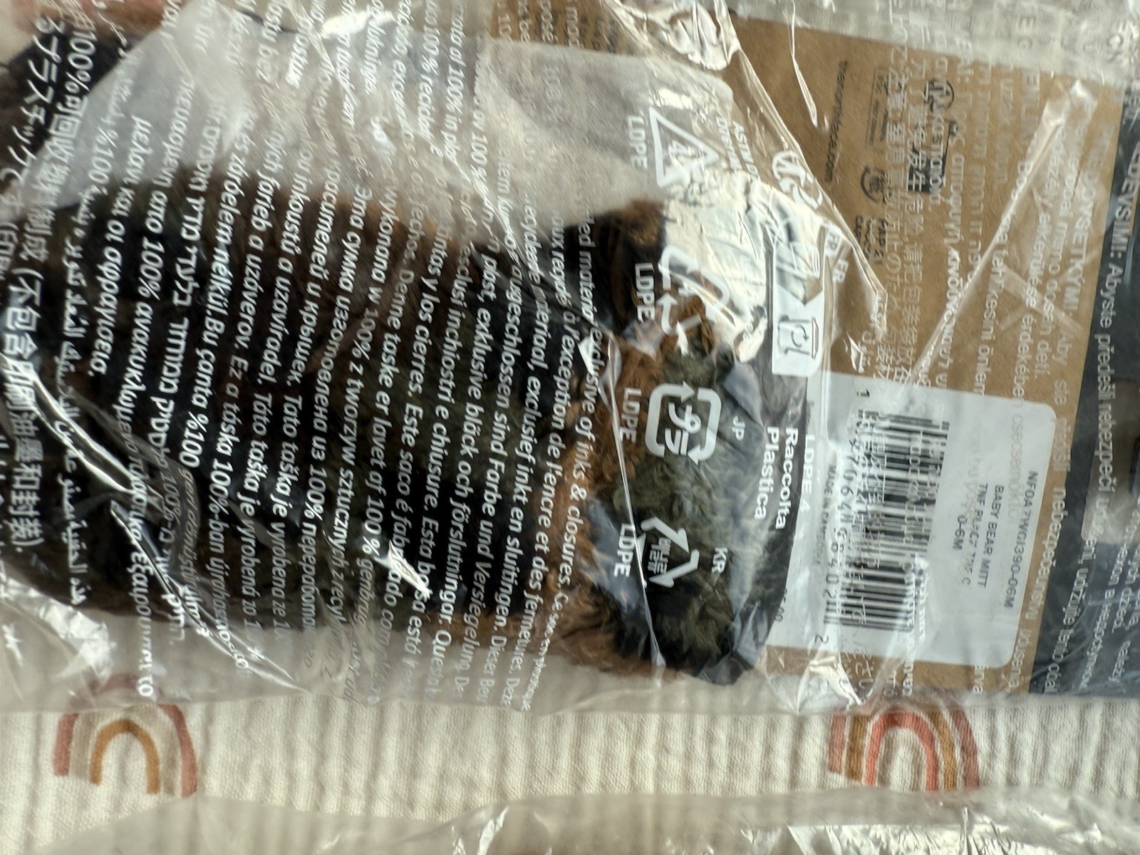как выглядит The North Face Baby Bear Fleece Mittens 0-6M Brown Black Green Animal Print фото