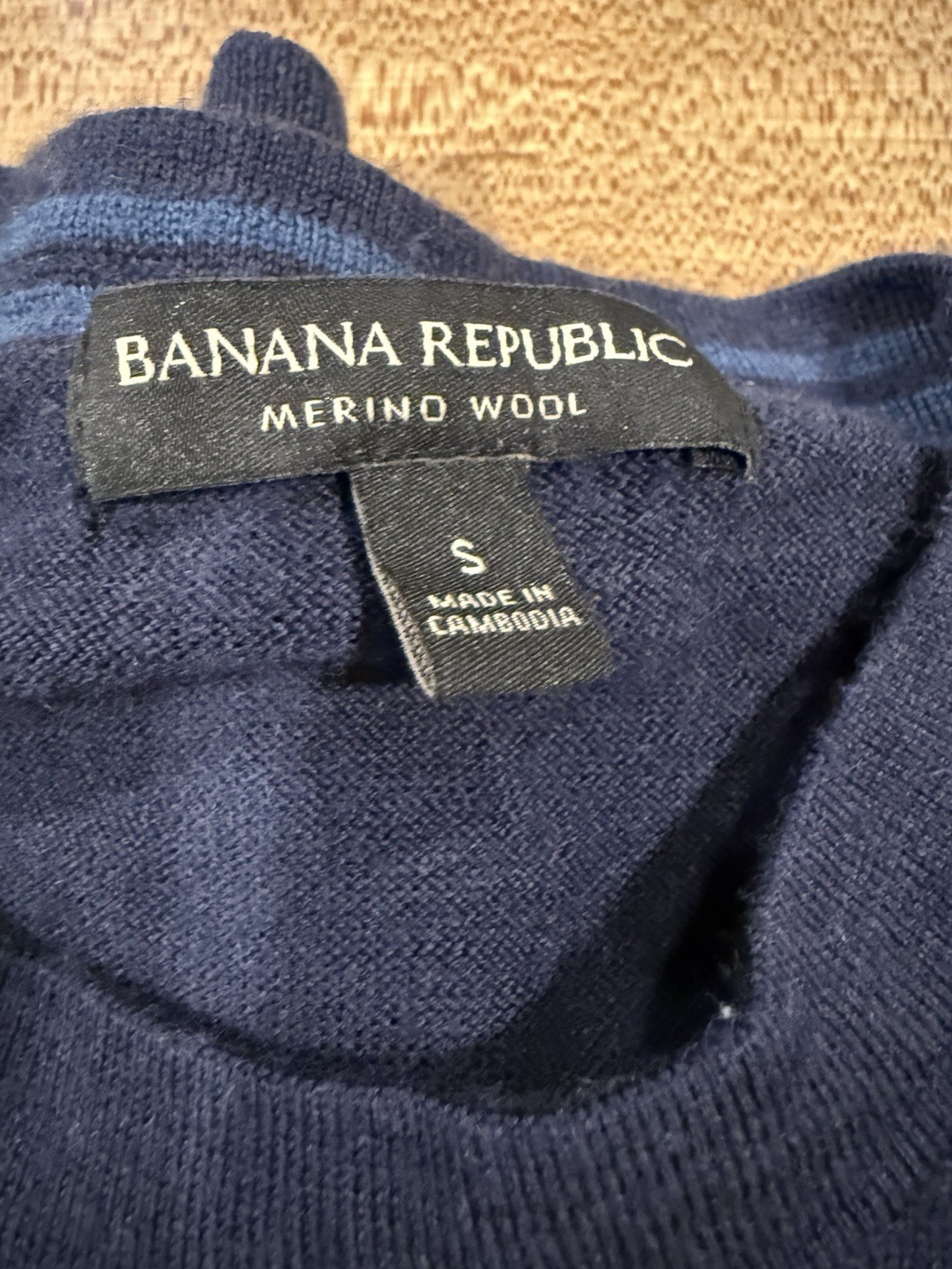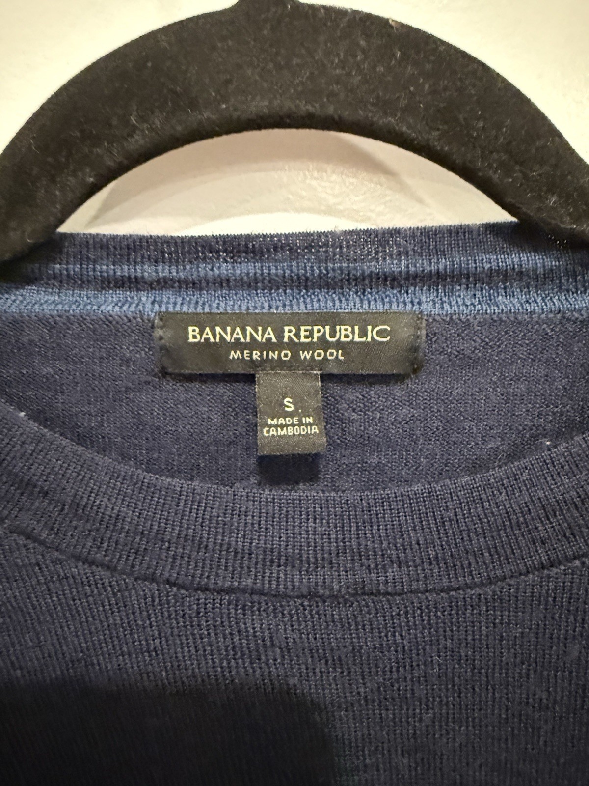 Banana Republic Men's Merino Wool Crew Neck Sweater, Navy Blue, Size: S