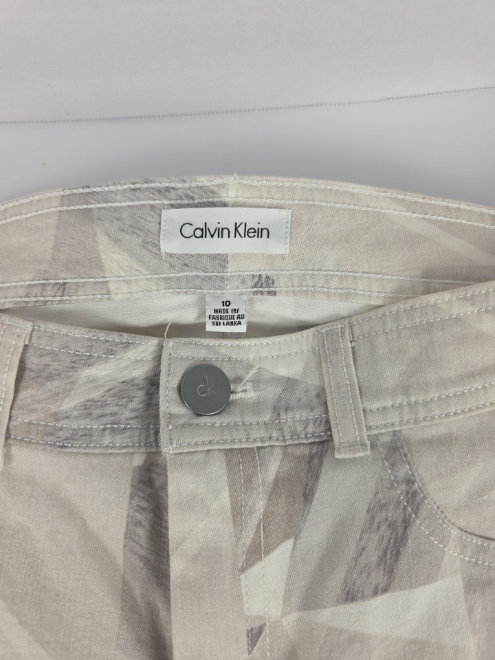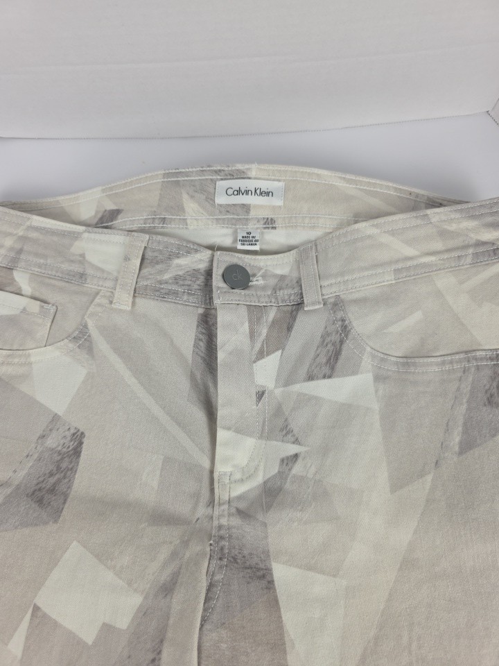 Calvin Klein Women's Size 10 Gray White Geometric Print Ankle Pants Trousers...