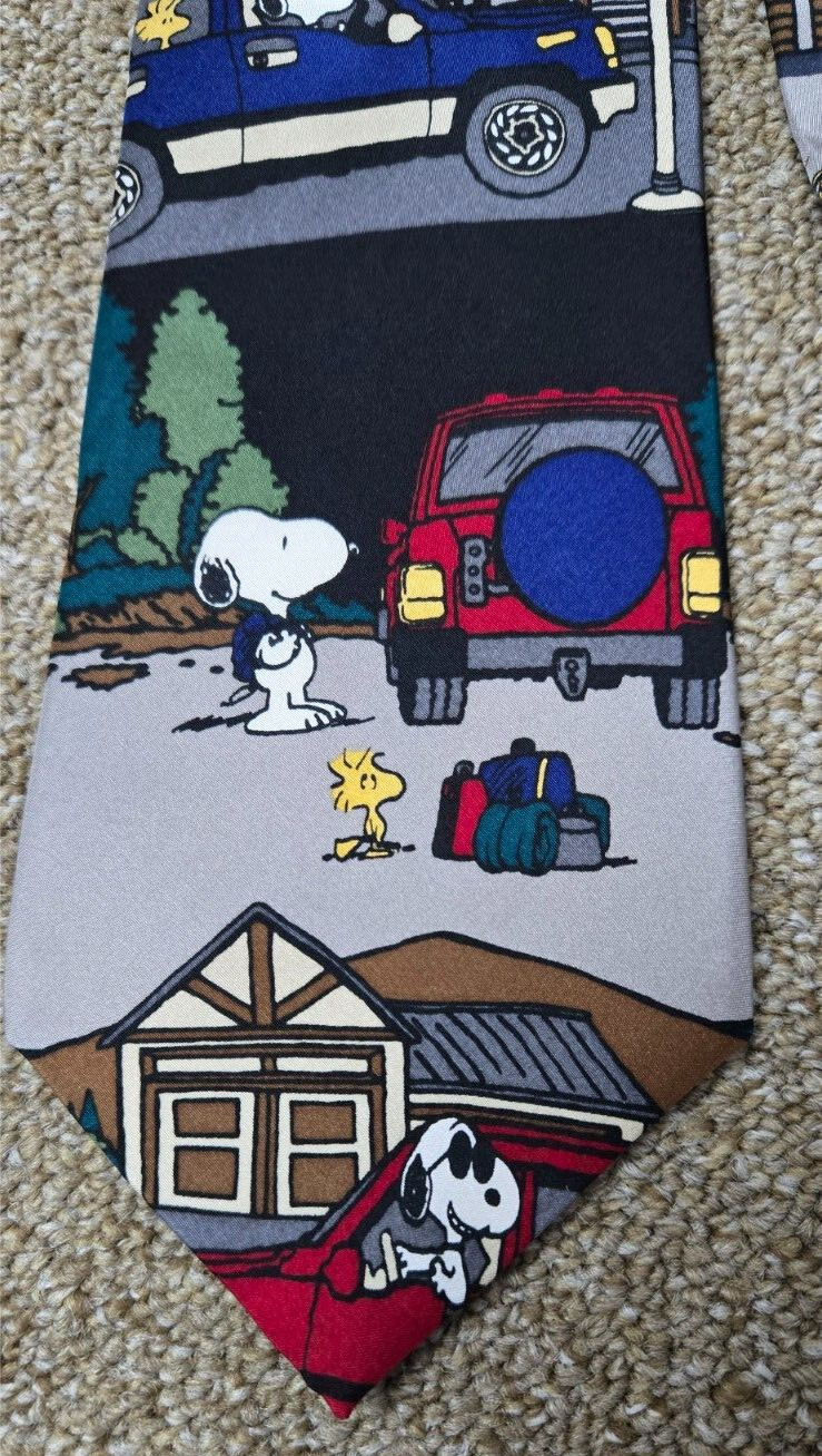 как выглядит Snoopy and Friends PEANUTS Mens 100 Silk Neck Tie Winter Christmas 3 7/8 x 56" фото
