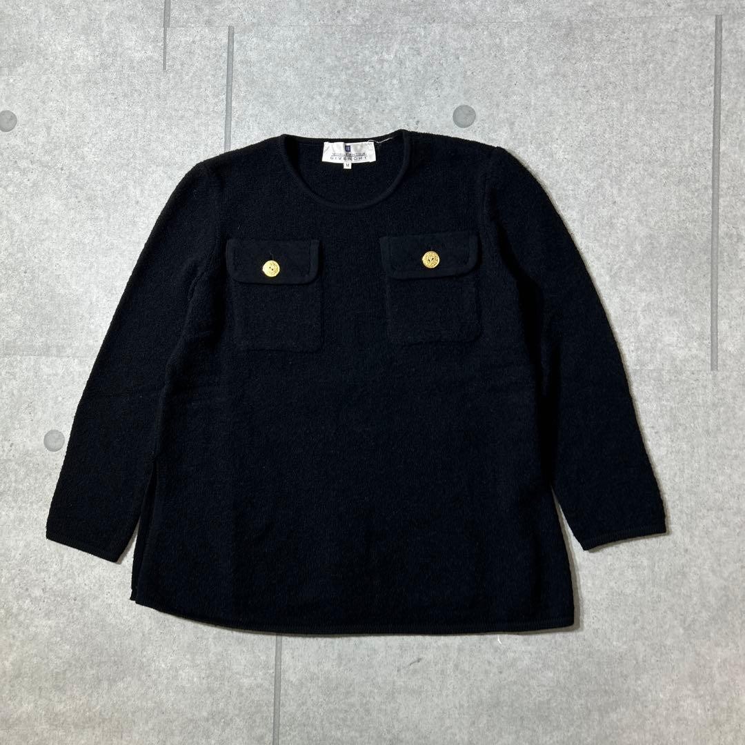 USED VINTAGE 80S GIVENCHY GOLD BUTTON WOOL SWEATER, SIZE M GOOD