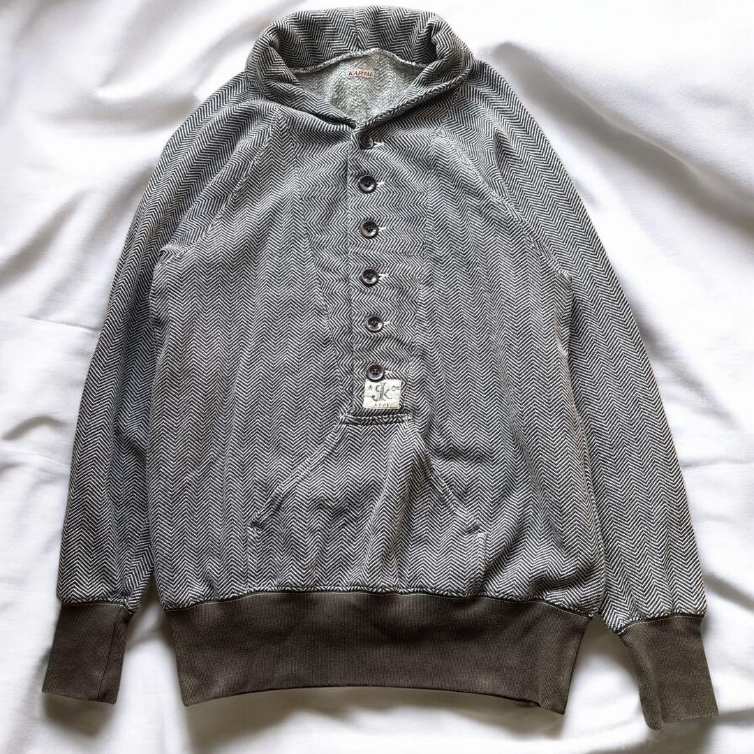 как выглядит USED RARE KAPITAL SWEATSHIRT PULLOVER WITH SHAWL COLLAR AND ELBOW PATCHES GOOD фото
