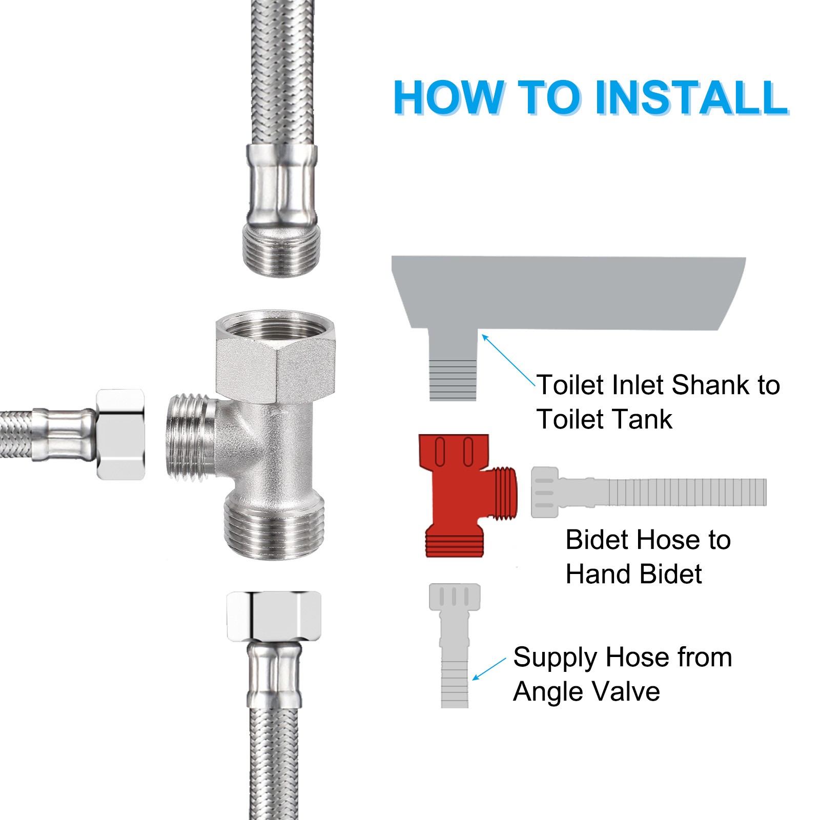 Bidet T Valve Adapter 7/8 G 1/2 Polished for Shower Head Diverter