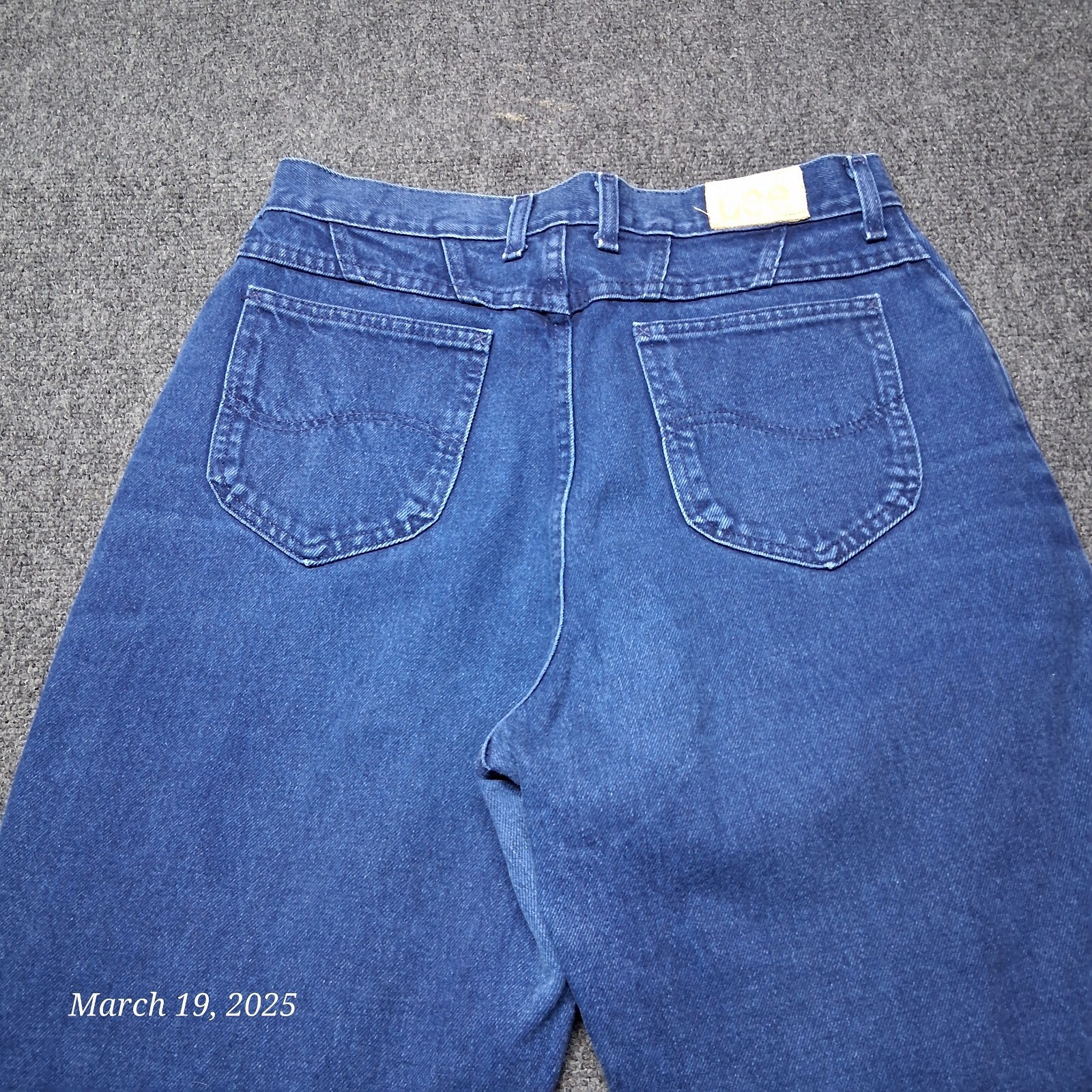как выглядит VTG Lee Jeans Women Sz 16 Med Dark Blue Stone Wash Tapered Leg HIGH Rise 32x31 фото